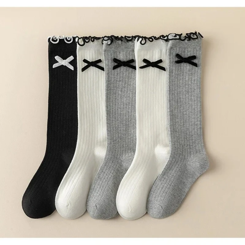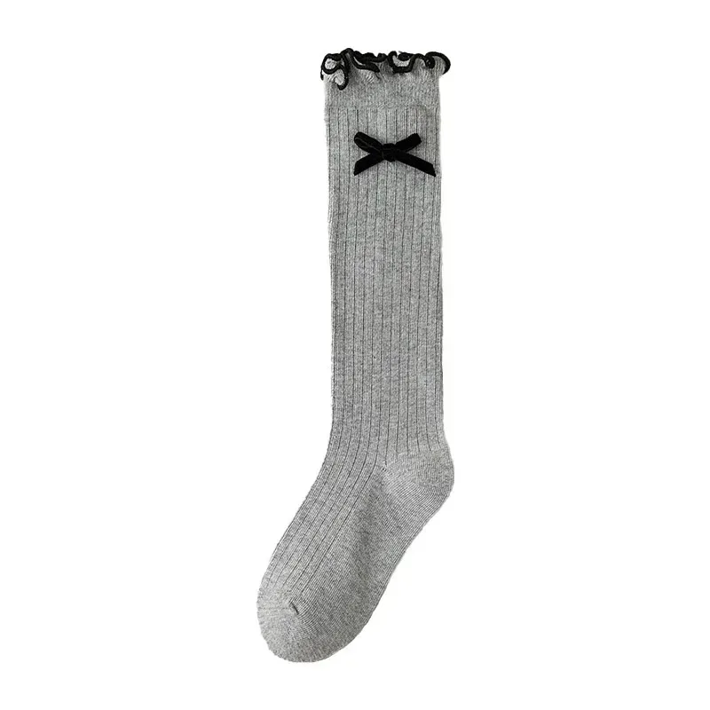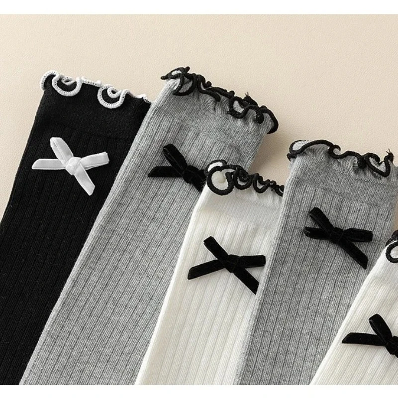1 Pair Chic Simplicity Kids Girl Sock Sweet Fashion Bow Ruffle Bow Children Girl Calf Sock Spring Autumn Cotton School Sock