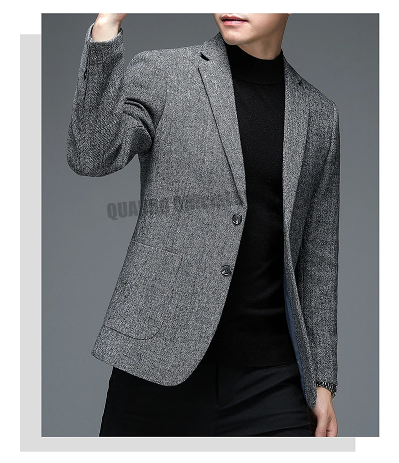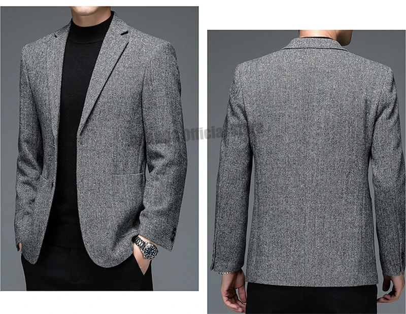 2024 Autumn and Winter New Top Quality Sheep Wool Fashion Business Blazers JacketsClassic Menswear Casual Gray Blue Blazer