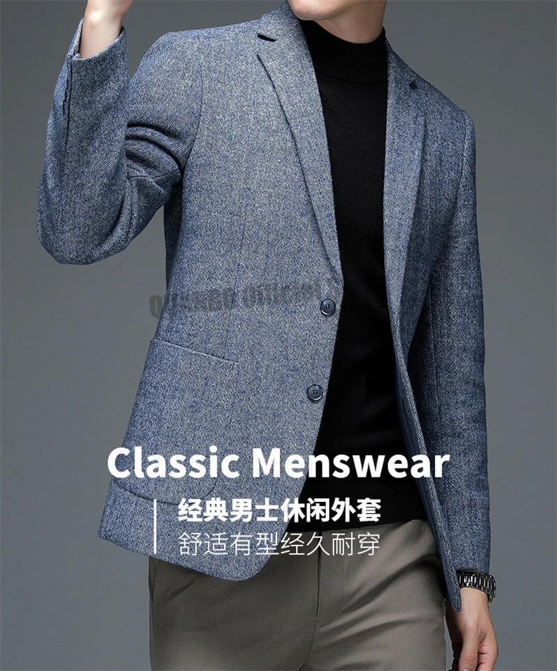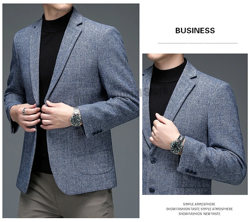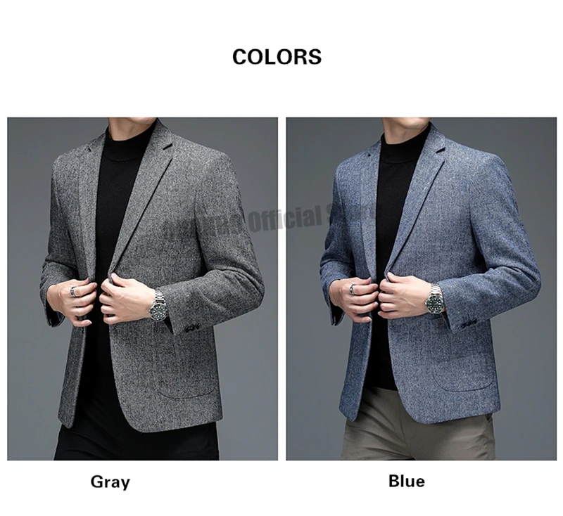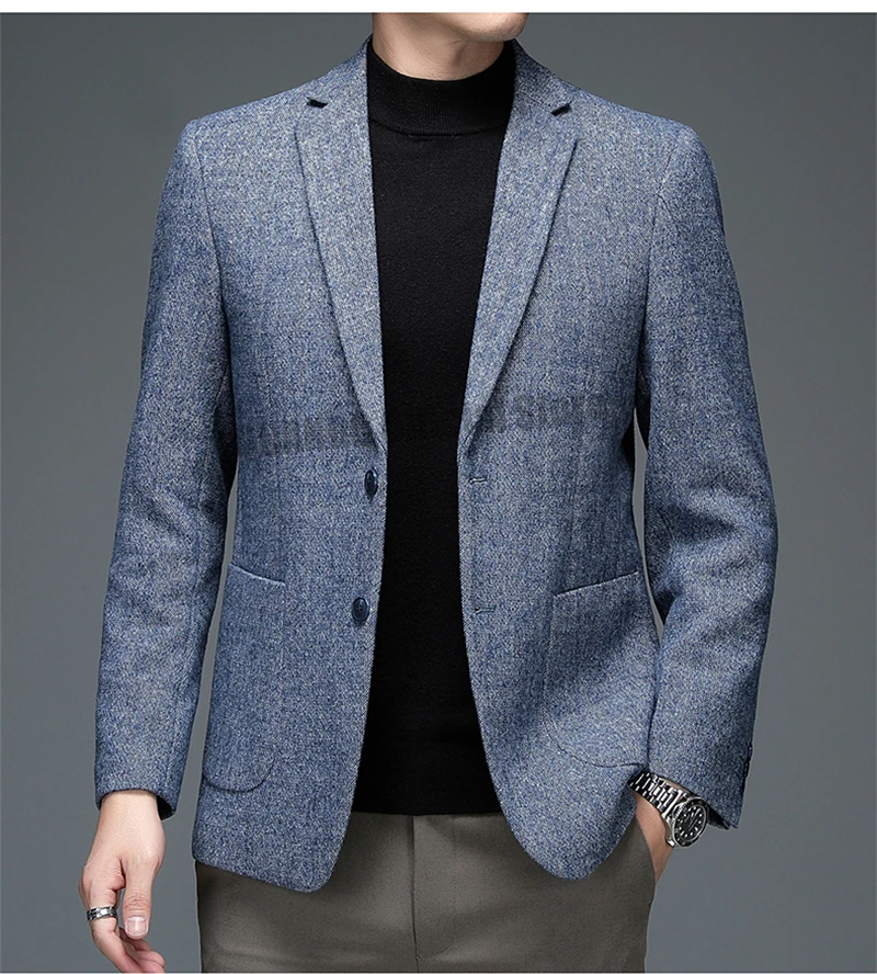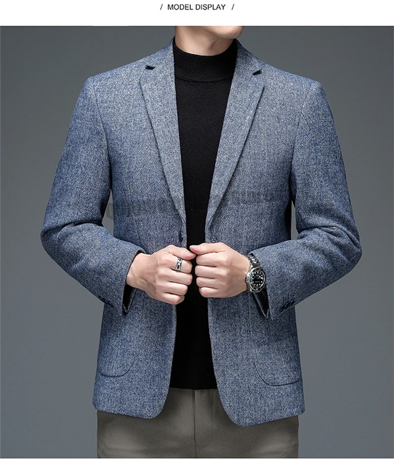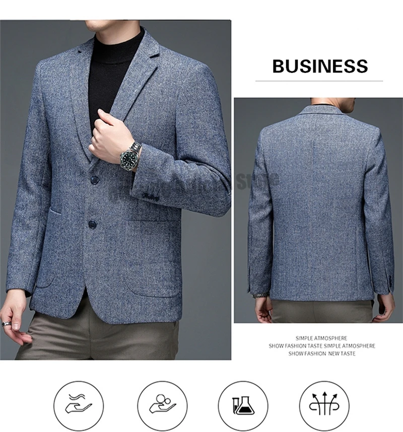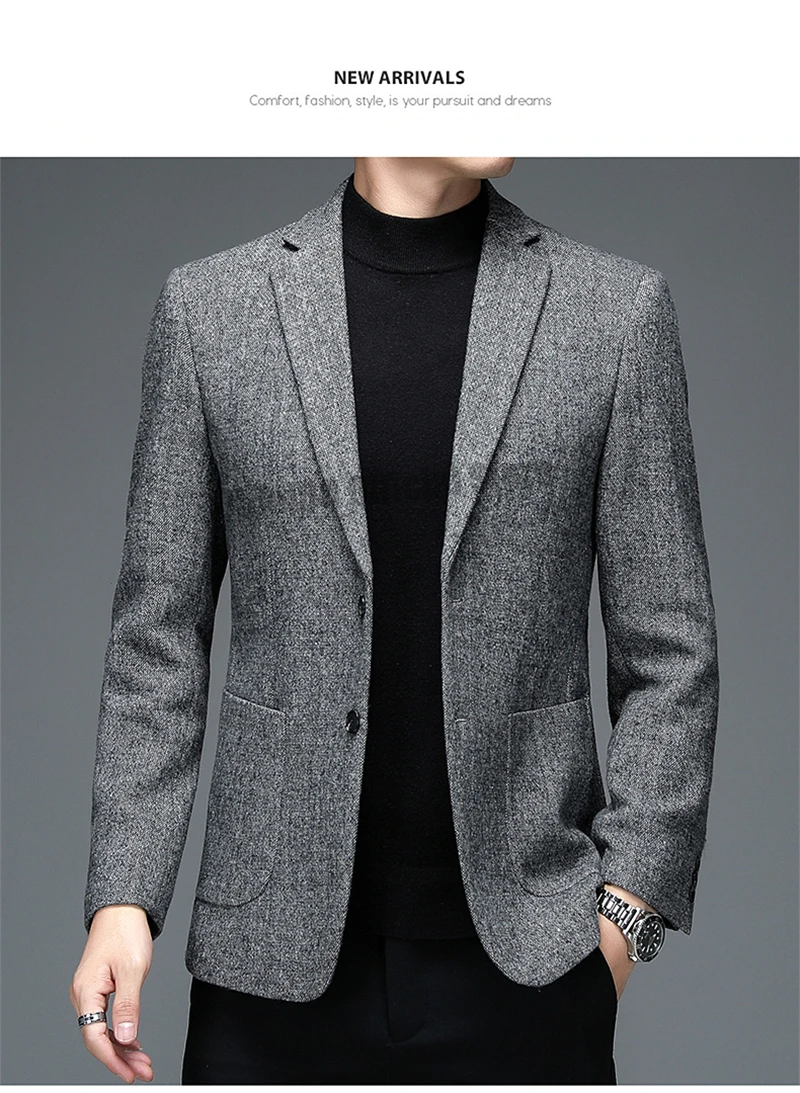 2024 Autumn and Winter New Top Quality Sheep Wool Fashion Business  Blazers JacketsClassic Menswear Casual Gray Blue Blazer