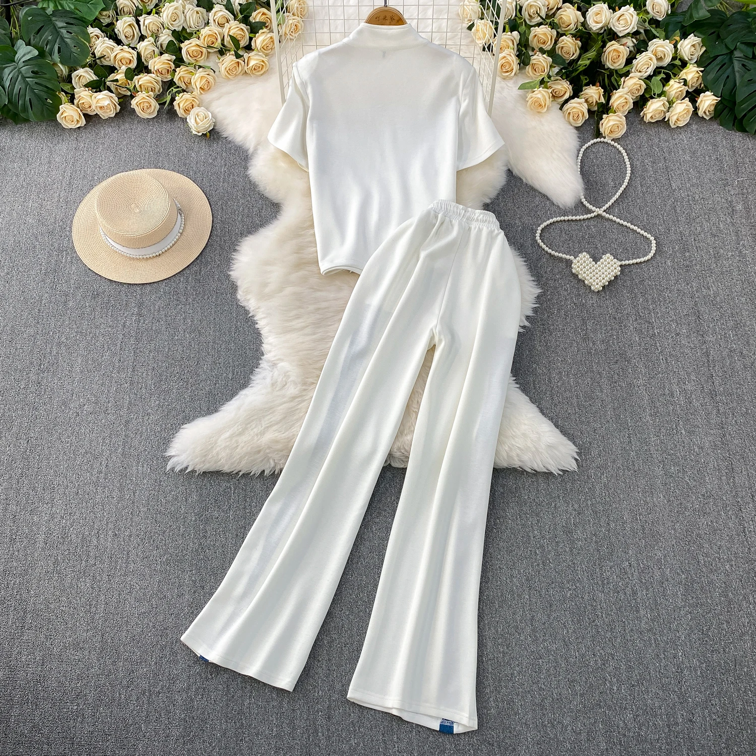 Complete your look with our two-piece set, combining a trendy T-shirt and flattering wide-leg pants.