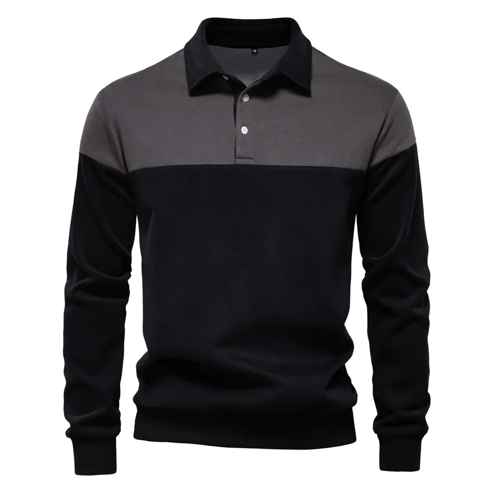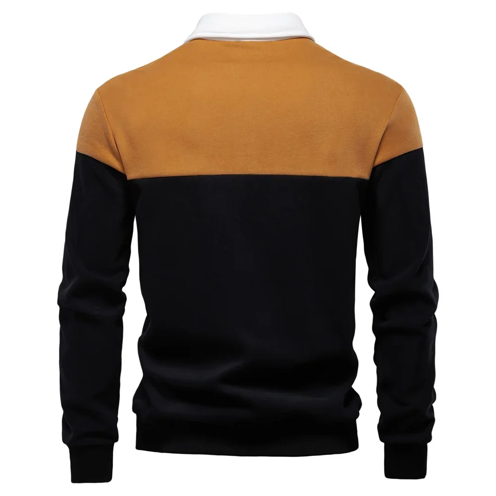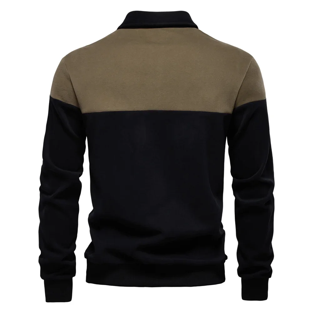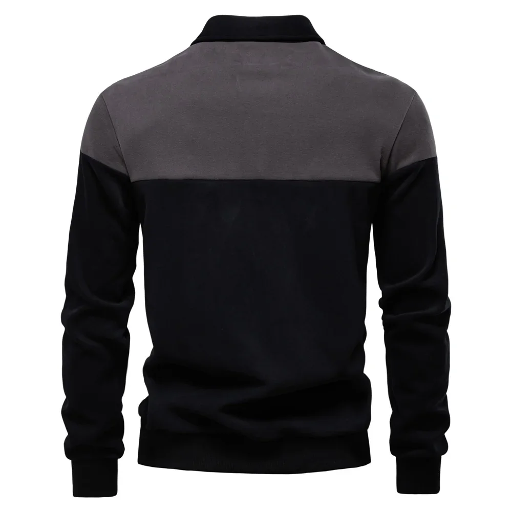2025 New Spring Men's Color-Block Cotton Blend Hoodies Polo Collar Business Sweater Shirts Casual Long Sleeve Sports Pullovers