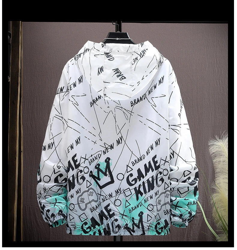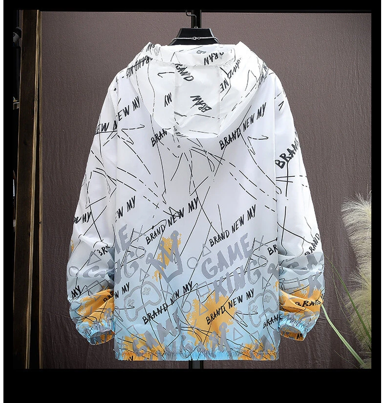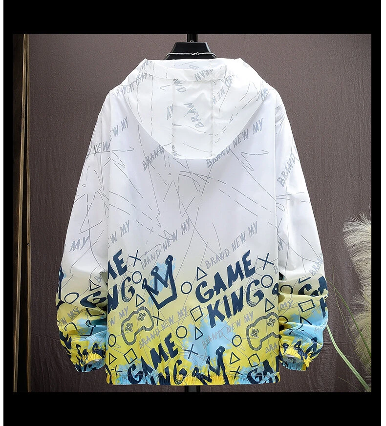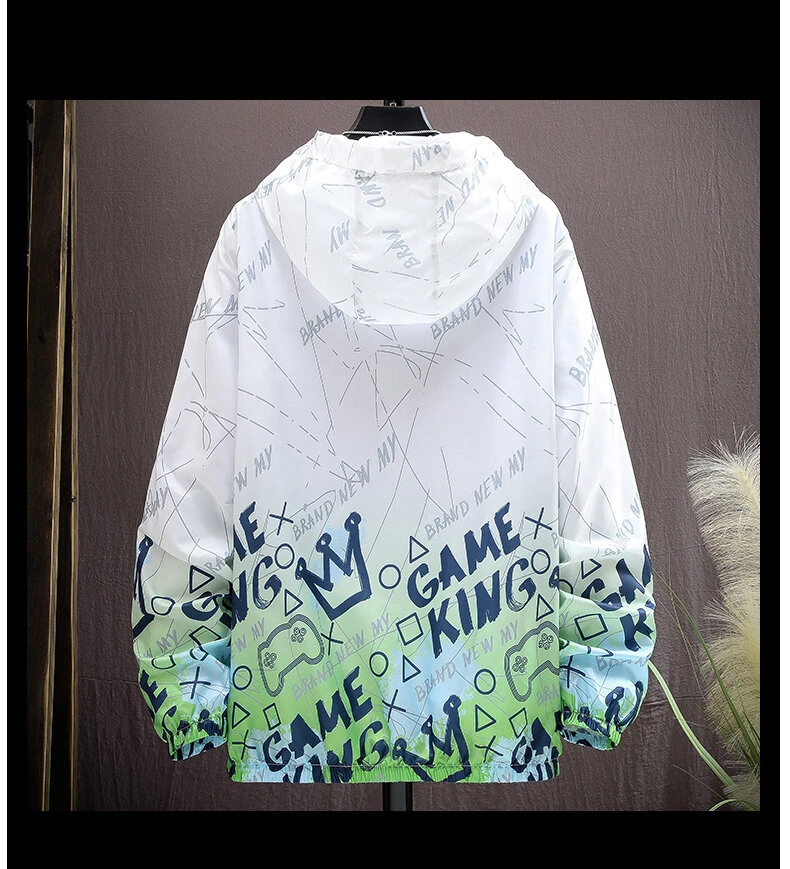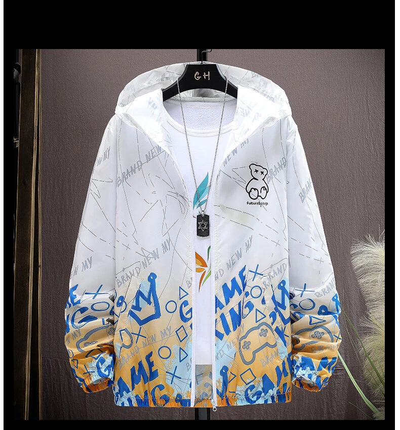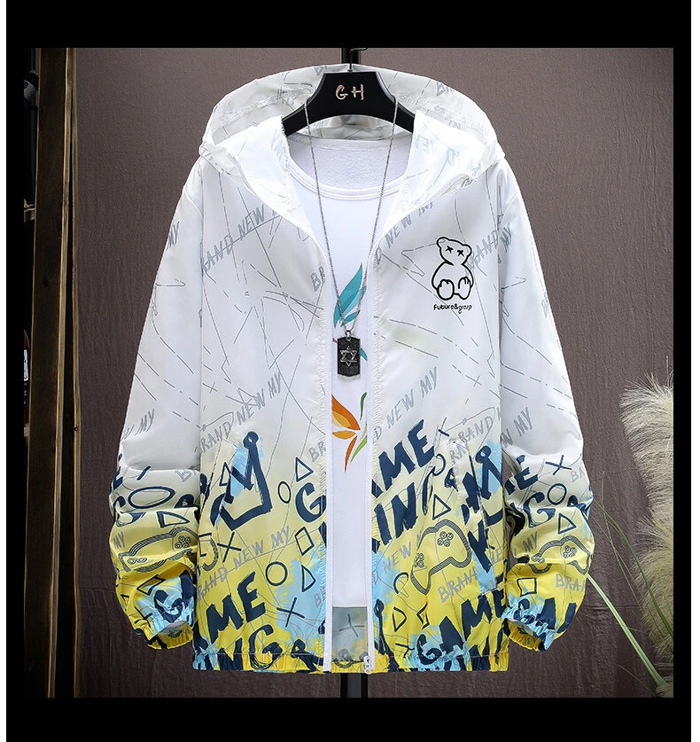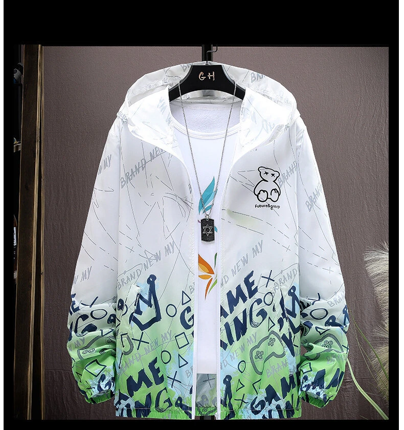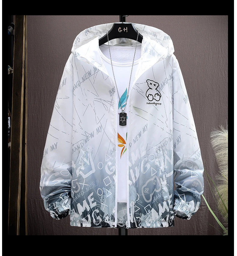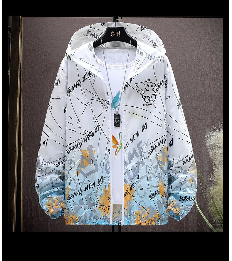 2025 Summer Skin Jacket Men Ultra Light UV Sun Protection Big Size Hooded Windbreaker Coats Men printing Casual Outwear