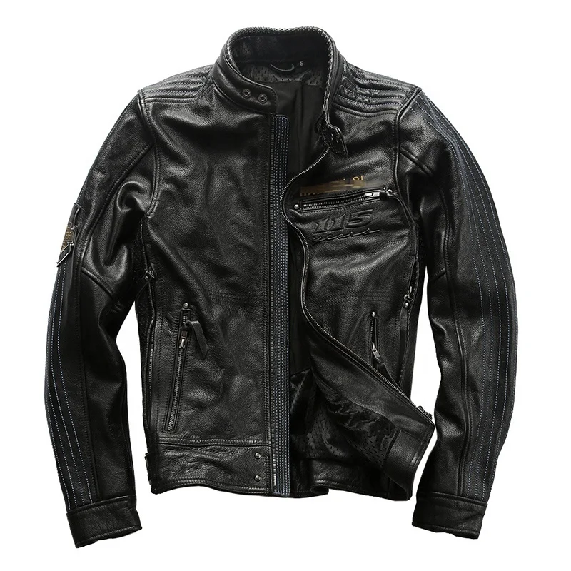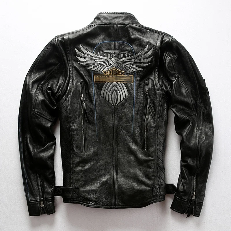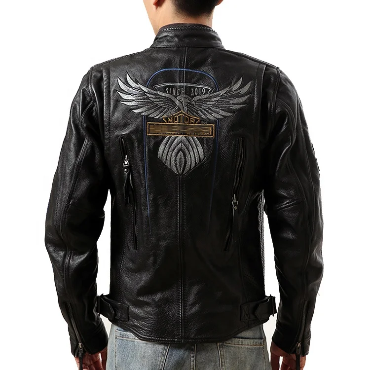Wholesale Custom Winter Autumn Genuine Leather Men's Eagle Embroidery Motorcycle Coats Plus Size Cowhide Jacket
