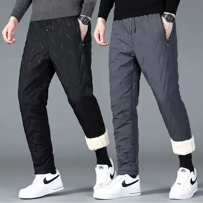 Winter Men Plush Thick Fleece Waterproof Sweatpant Windproof Casual Pants Warm Pants Lambswool Thermal Trousers Casual Outerwear