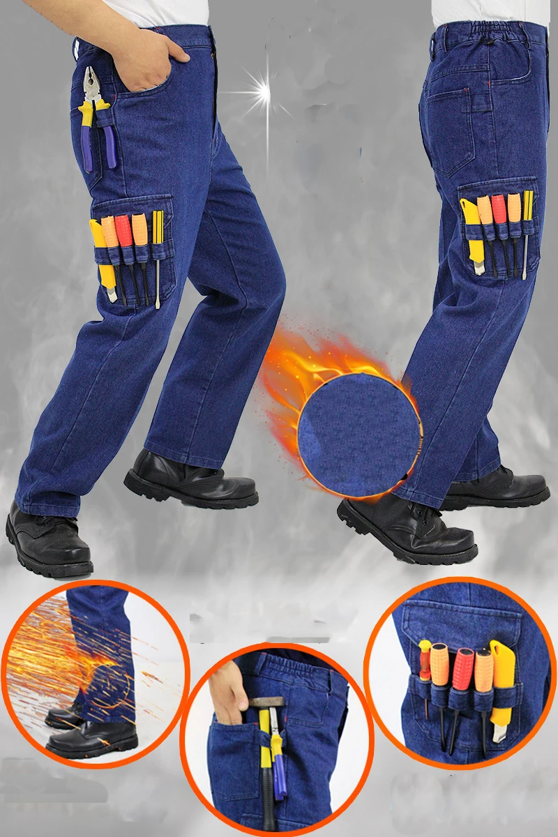 Work Clothing Jeans Trousers Cargo Thick Pants Flame Retardant Anti-Scalding Welding Suit Repair Multi Pocket Durable Trousers Work Clothing Jeans Men Casual Cargo Thick Pants Flame Retardant Anti-Scalding Welding Repair Multi Pocket Durable Trousers
