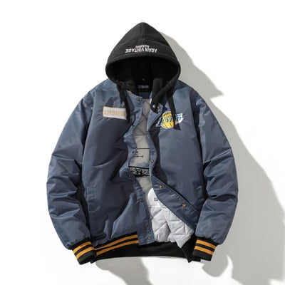 Winter Vintage Jacket Men Women Hip Hop Baseball Jacket Embroidery Letter Streetwear Hooded Coat Fashion Loose Couples Clothes