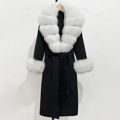 2025 New Autumn Wool Blend Coat Women Elegant Warm Real Fox Fur Collar Winter Wool Coat Female Double-sided Cashmere Jacket