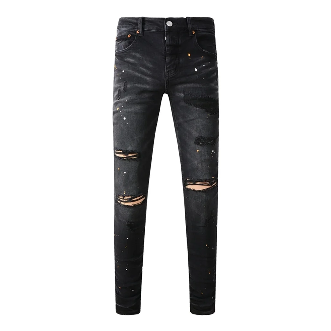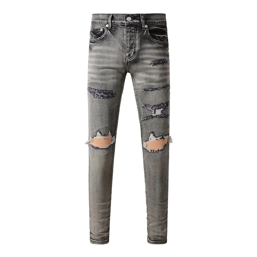 Fashion American Streetwear Distressed Vintage Men's Jeans Low Rise Stretch Skinny Button Fly Ripped Hold Pants