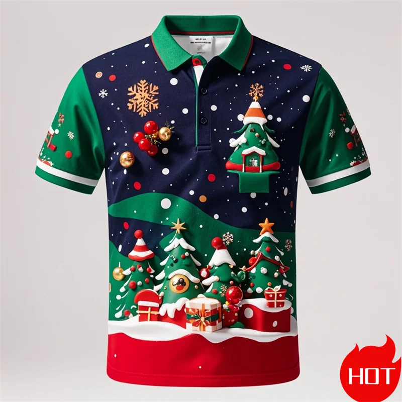 Funny 3D Cute Santa Claus Xmas Printed Polo Shirt For Men Happy Christmas Tee Merry Christmas Graphic Shirts & Blouses POLO Tops