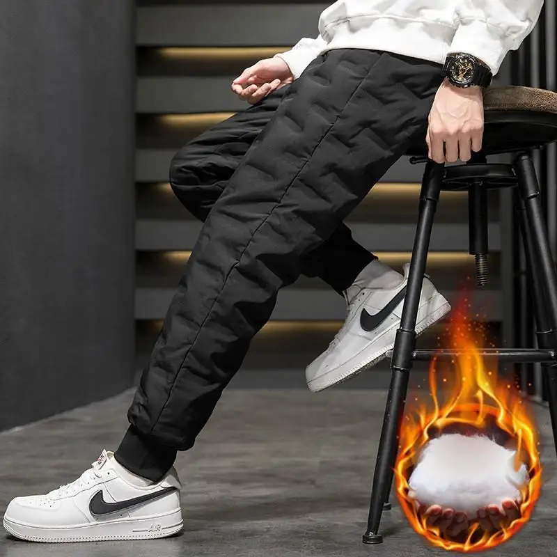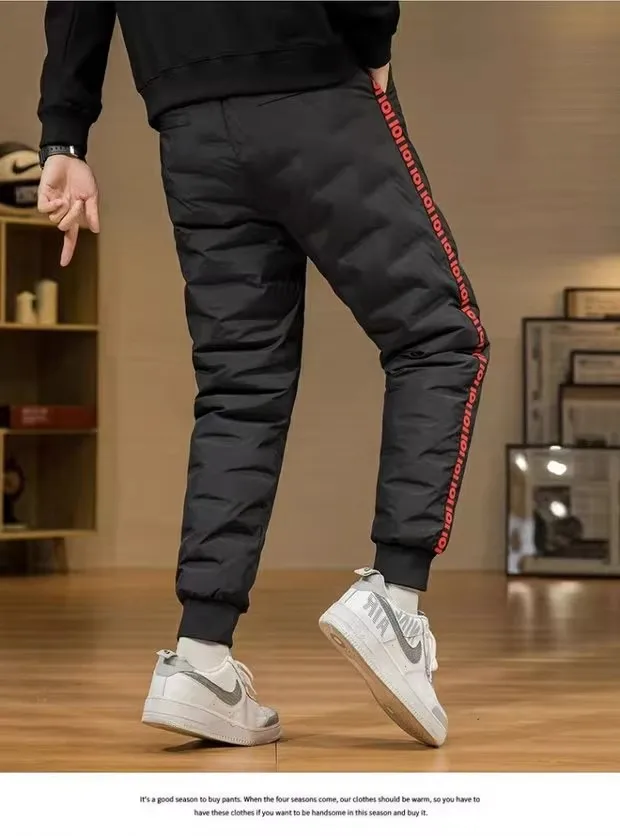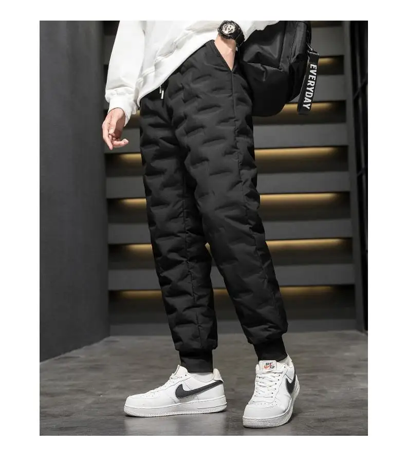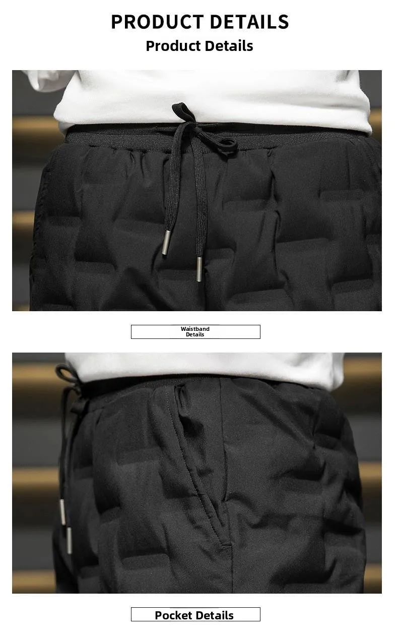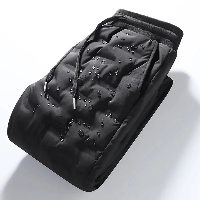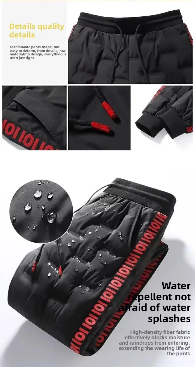 Men's Outdoor Casual down Trousers Windproof Waterproof Winter Warm Cotton Pants Dstring Waist Long Polyester Fiber