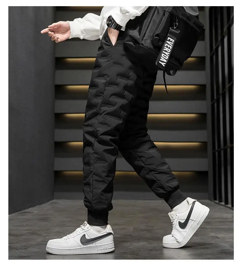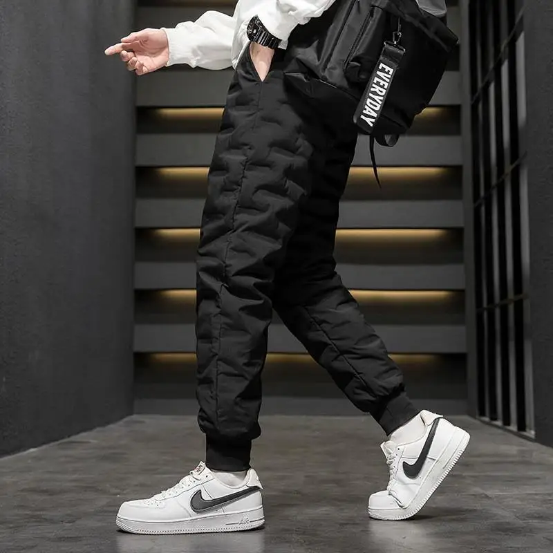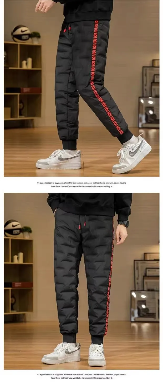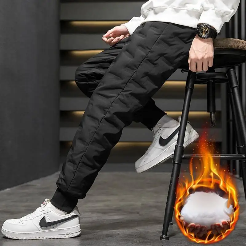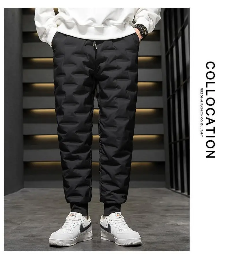 Men's Outdoor Casual down Trousers Windproof Waterproof Winter Warm Cotton Pants Dstring Waist Long Polyester Fiber