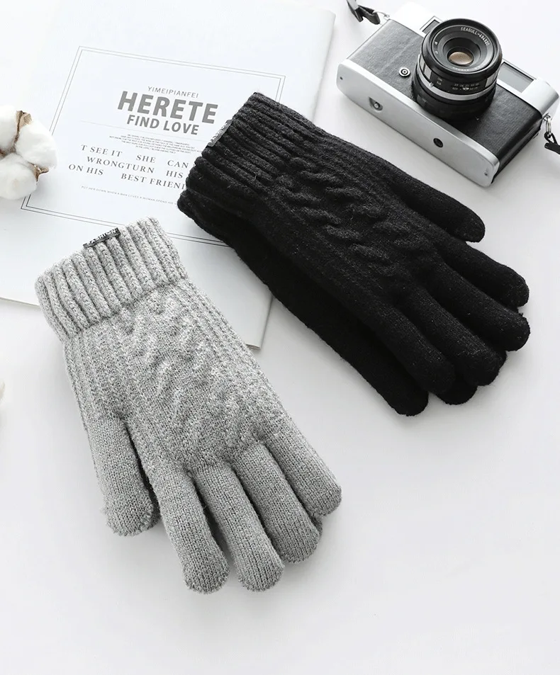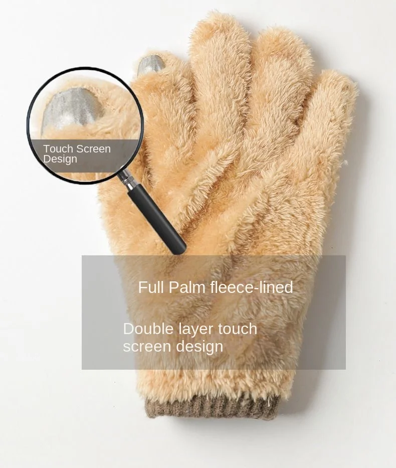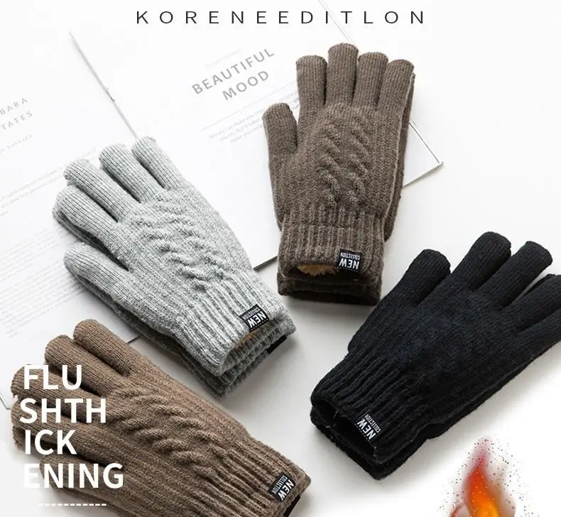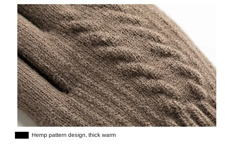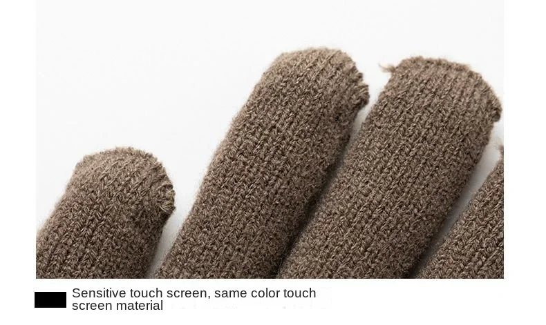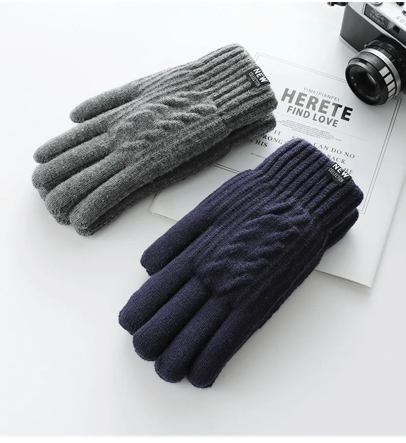 New Men's Warm Full-finger Gloves Winter Touch Screen Plus Fleece Gloves Men's Thick Knitted Cycling Gloves