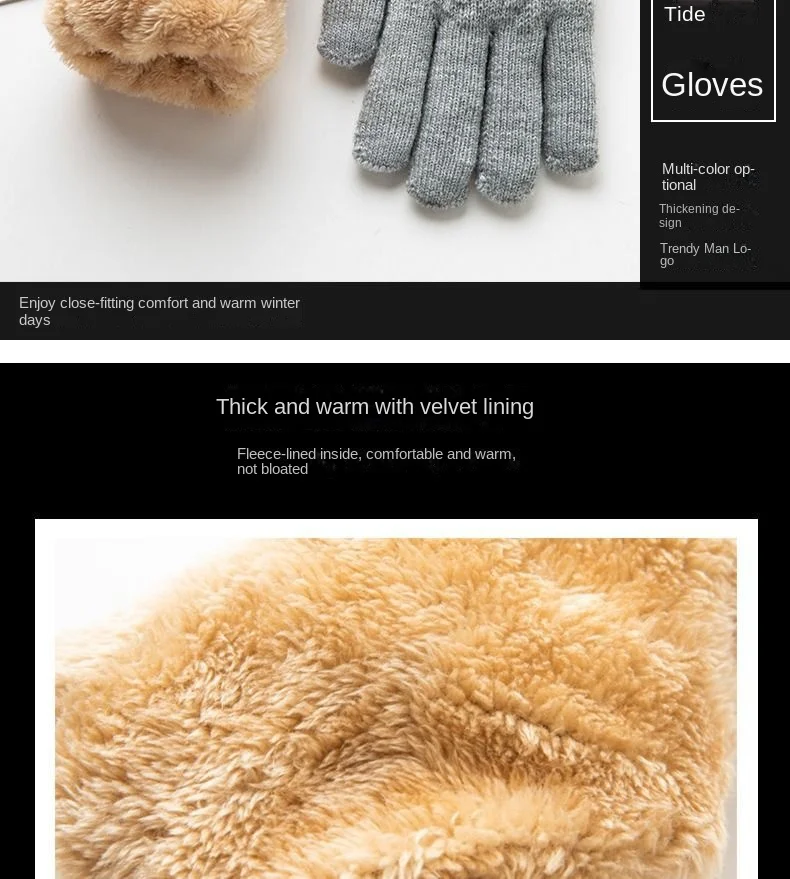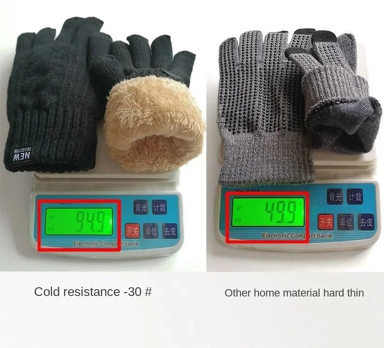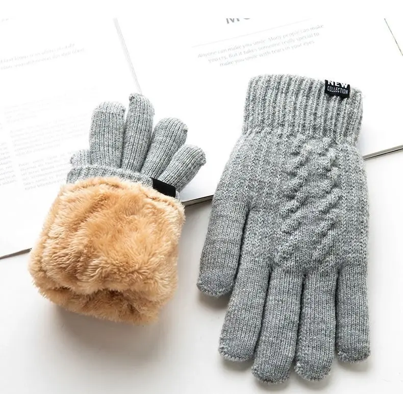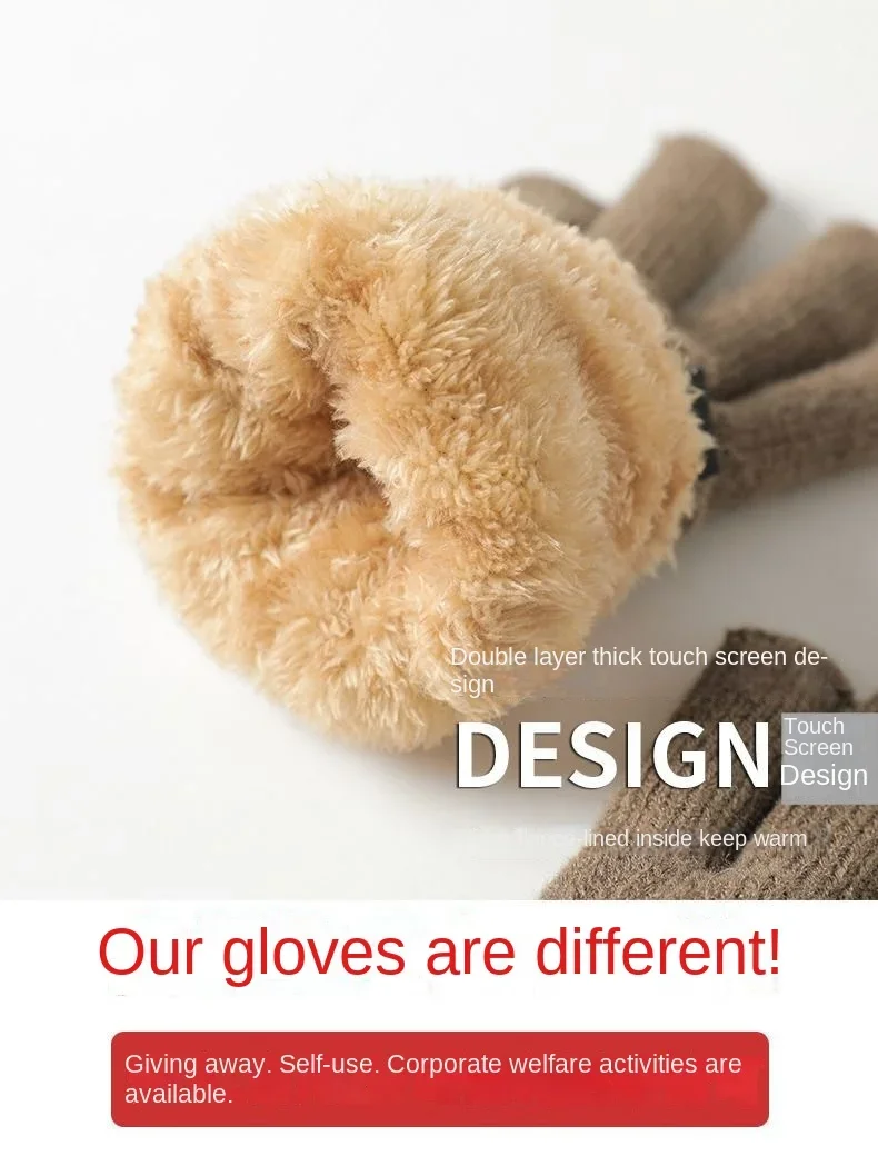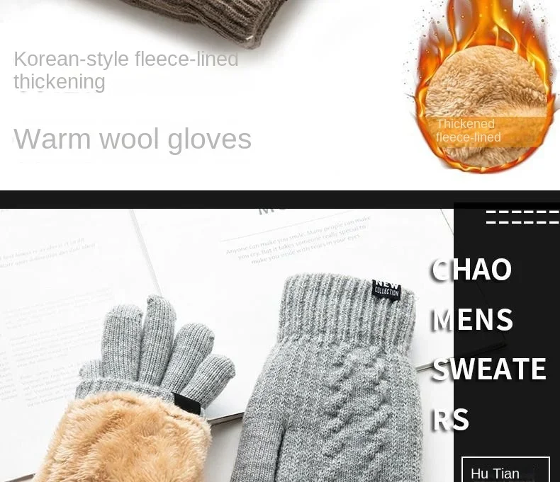New Men's Warm Full-finger Gloves Winter Touch Screen Plus Fleece Gloves Men's Thick Knitted Cycling Gloves