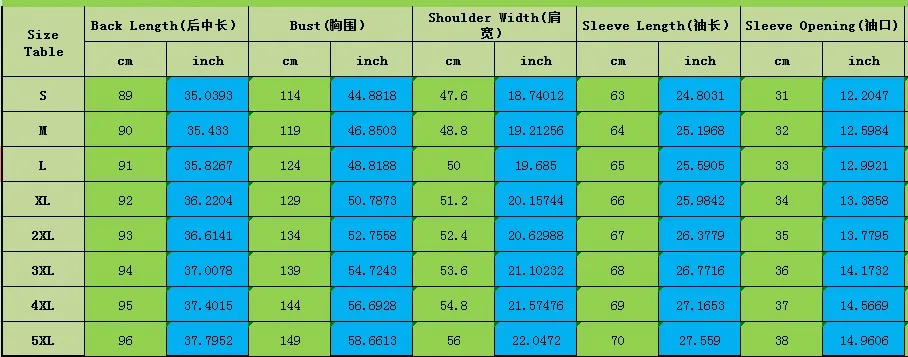Size: S M L XL 2XL 3XL 4XL 5XL