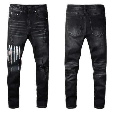 European and American fashion street spray painted colorful letters denim cotton casual pants youth tight jeans
