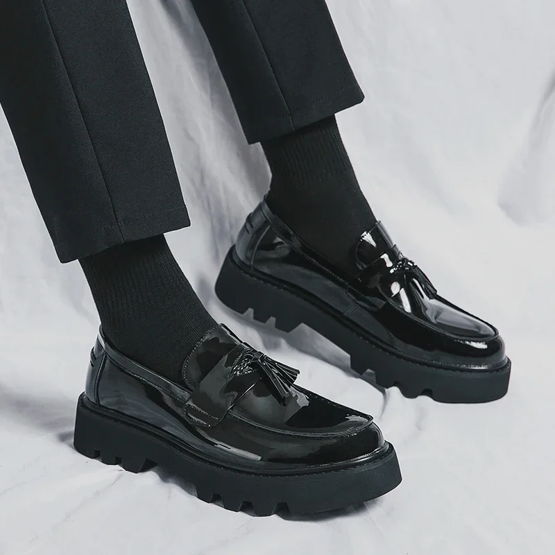 Black Dress Casual Shoes Mens Comfortable Driving Loafers Light Moccasins Men Sequins Bling Party Wedding Flats Tassel Zapatos