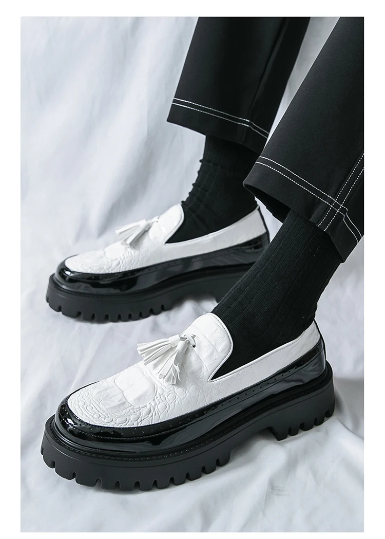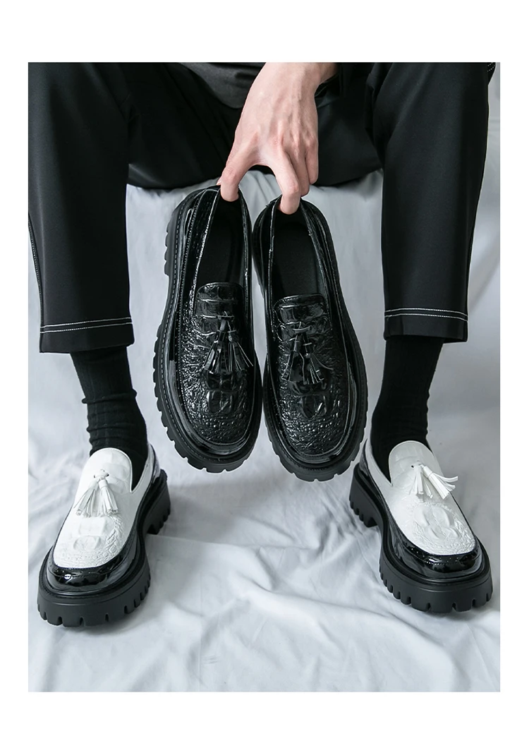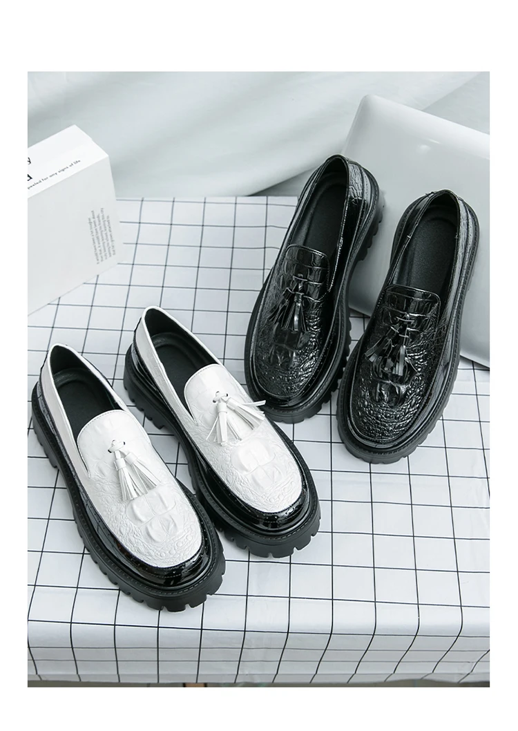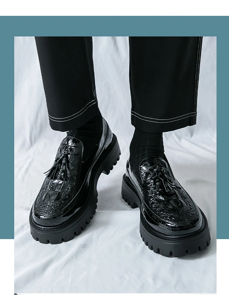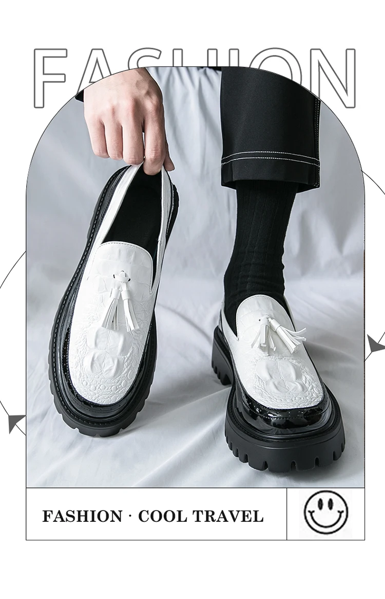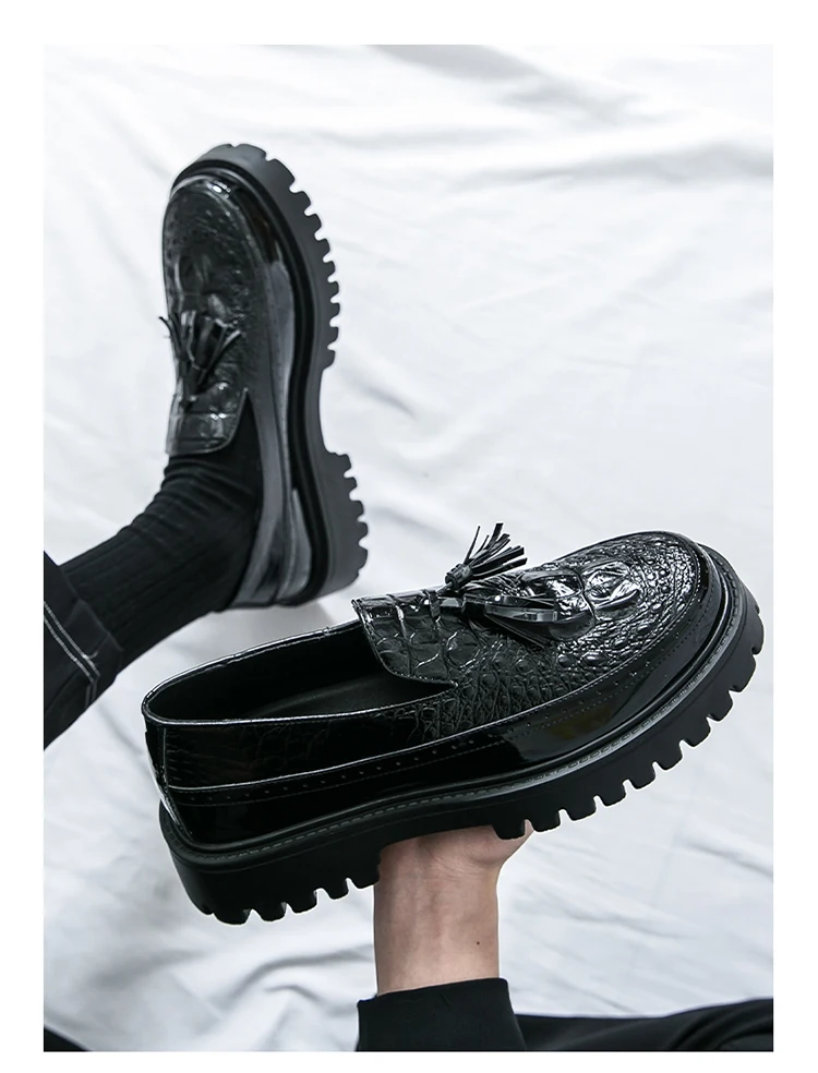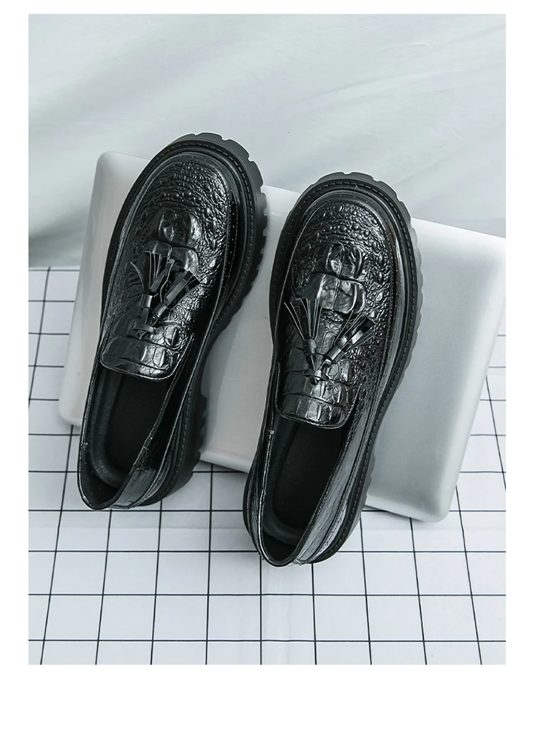 Men's Tassel leather shoes Slip on Loafers Thick Sole Comfortable Casual Round Toe Walking Shoes Men Breathable Dress Moccasins