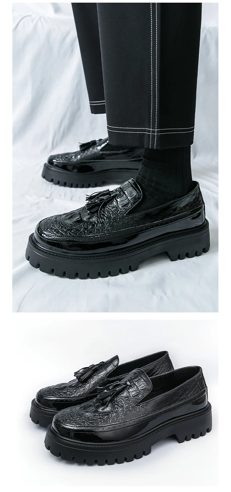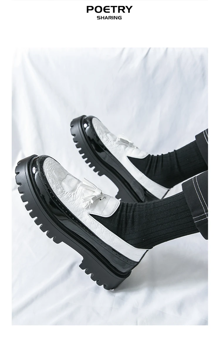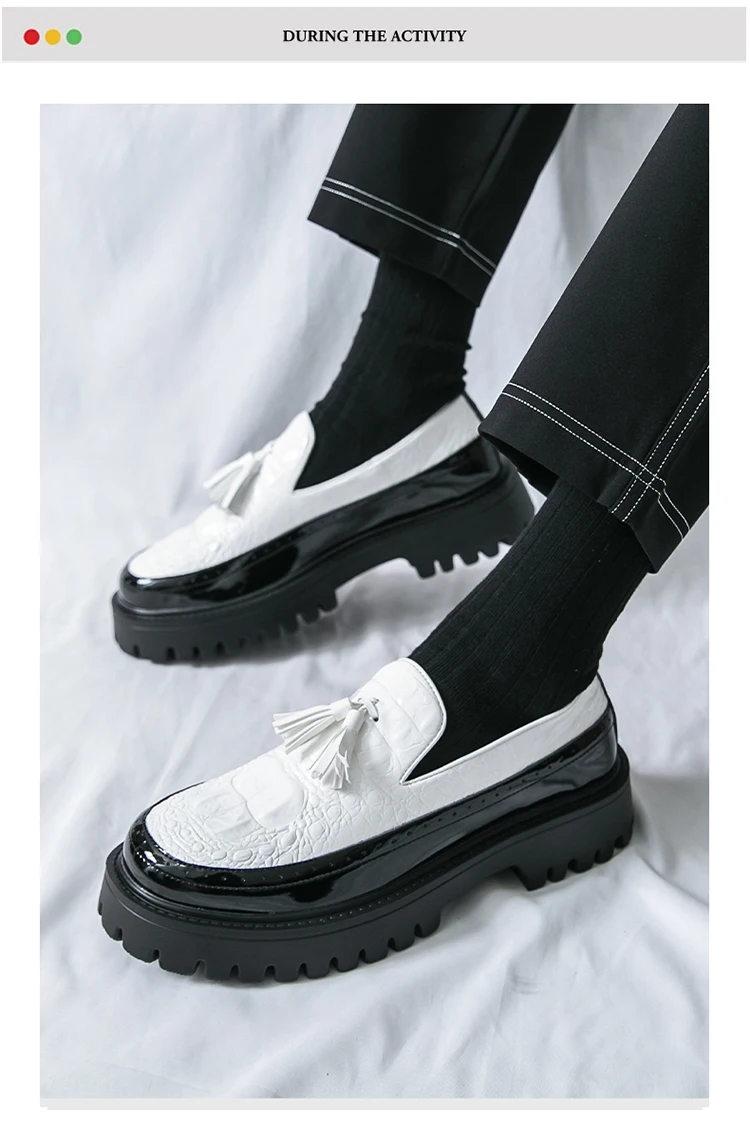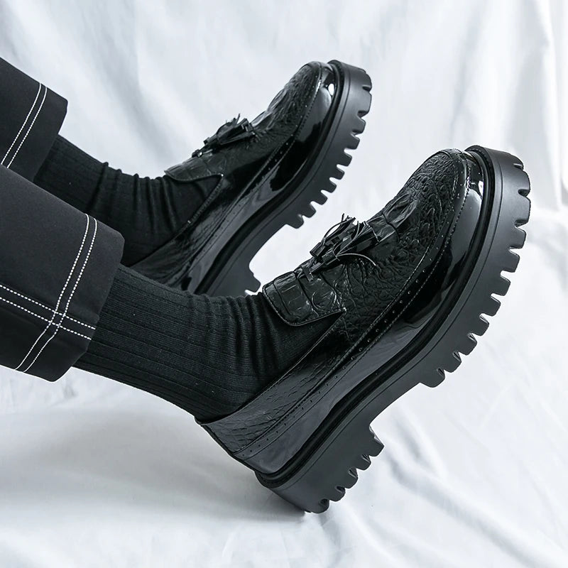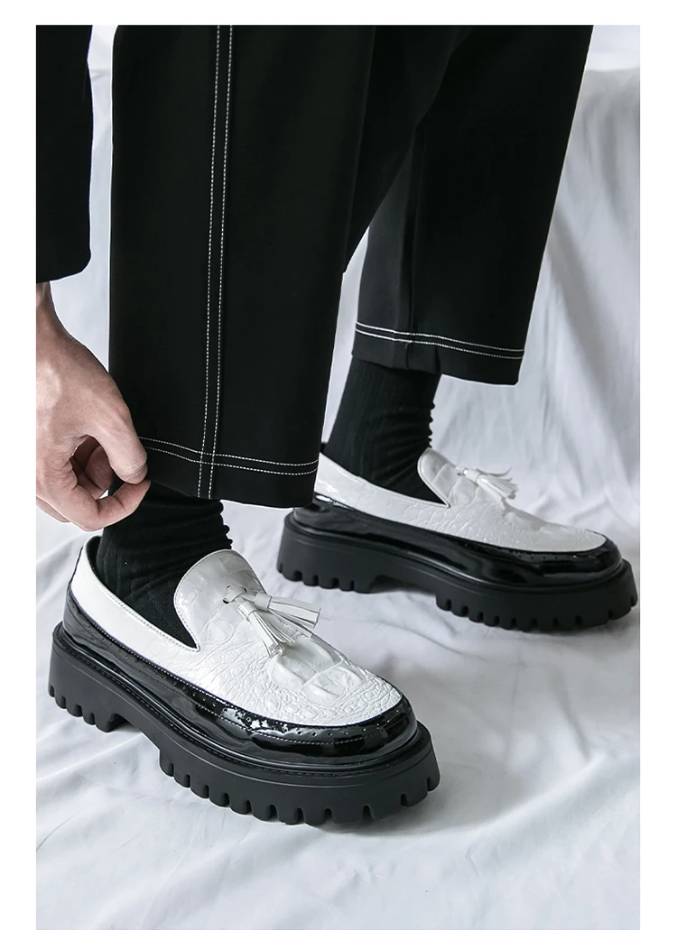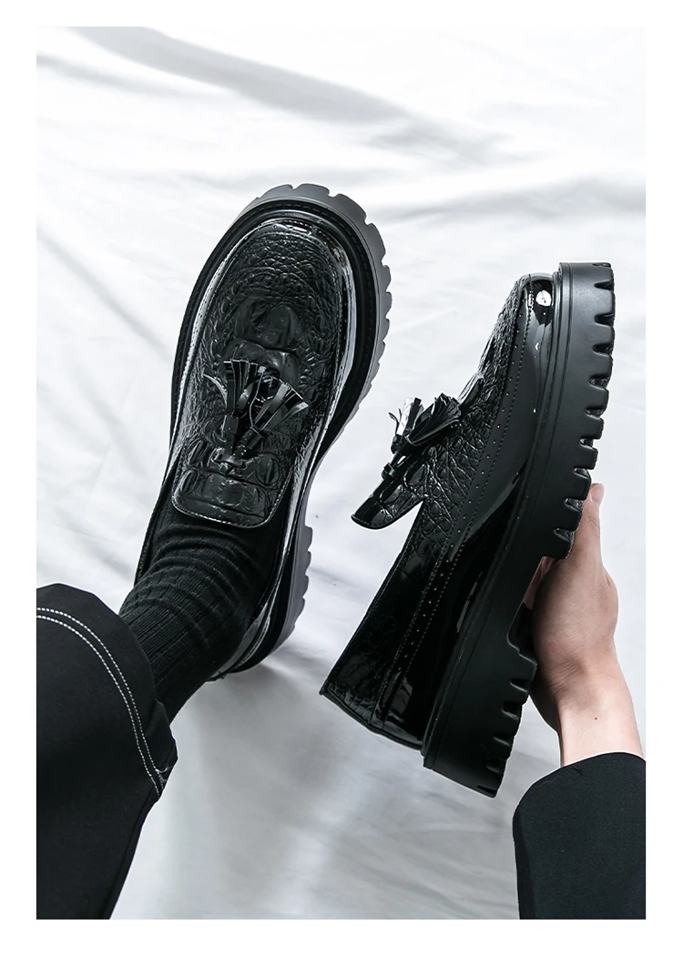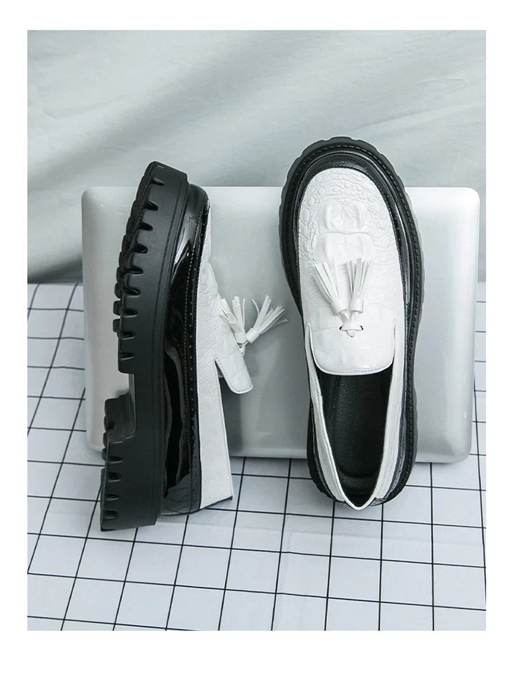Men's Tassel leather shoes Slip on Loafers Thick Sole Comfortable Casual Round Toe Walking Shoes Men Breathable Dress Moccasins