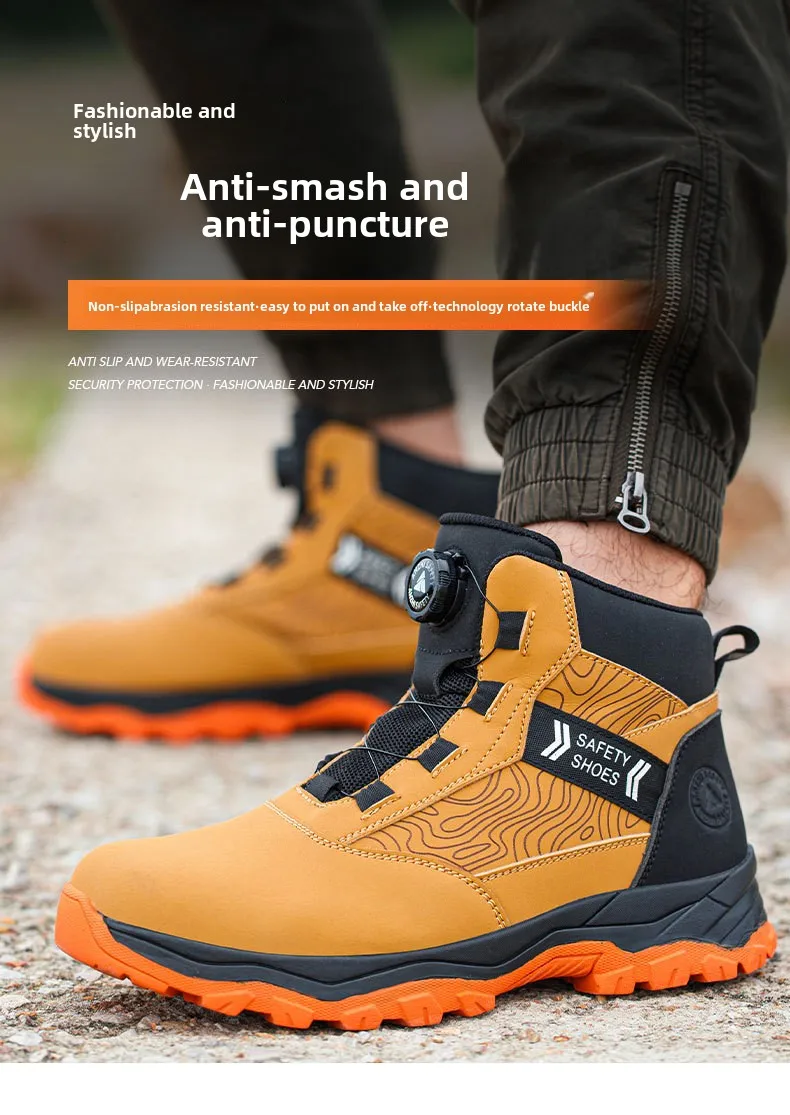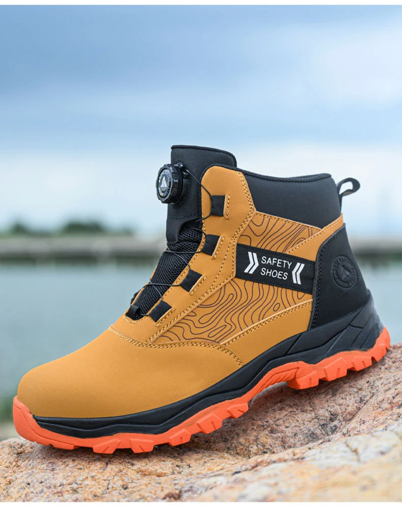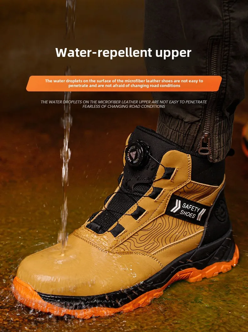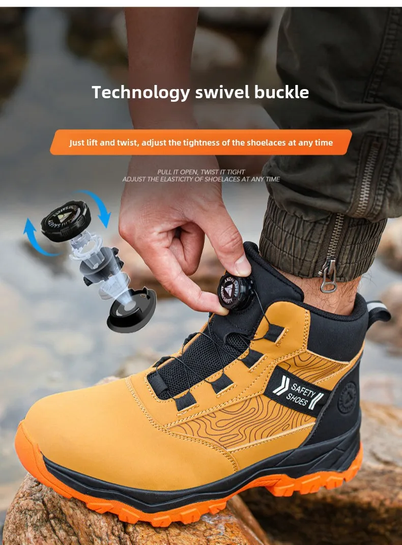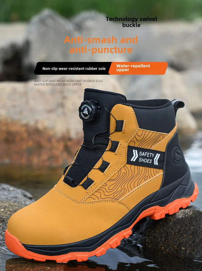 waterproof work shoes high man rotating button safety shoes anti-slip rubber outsole work boots sneakers with steel toe cap
