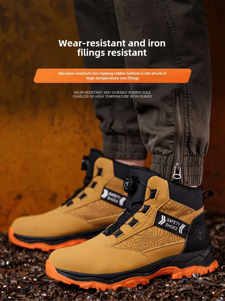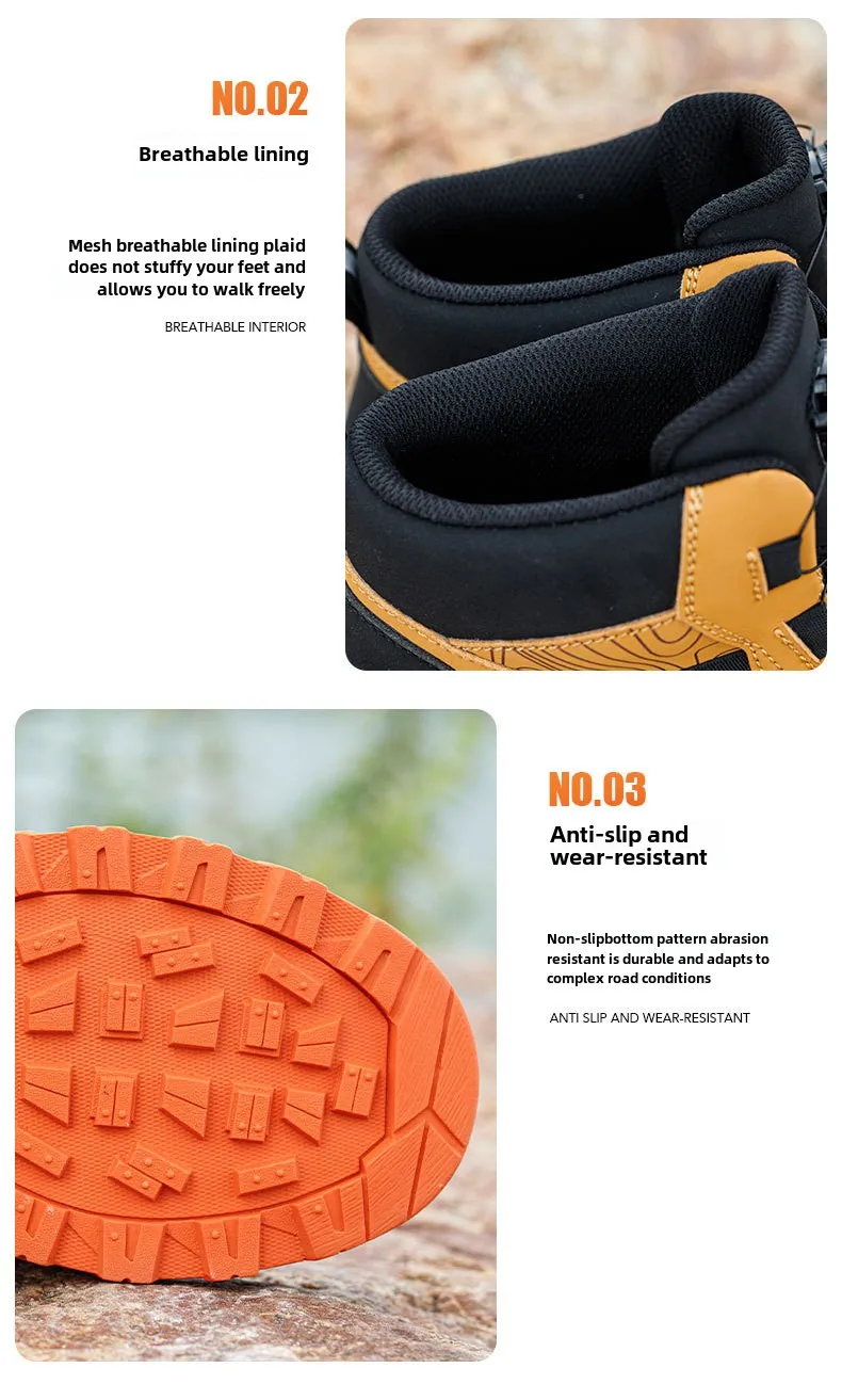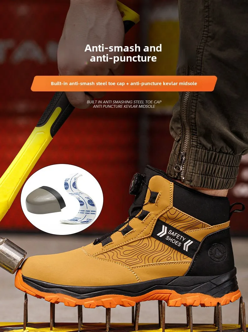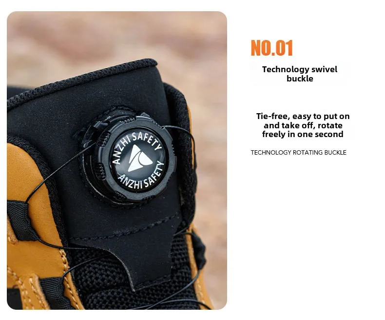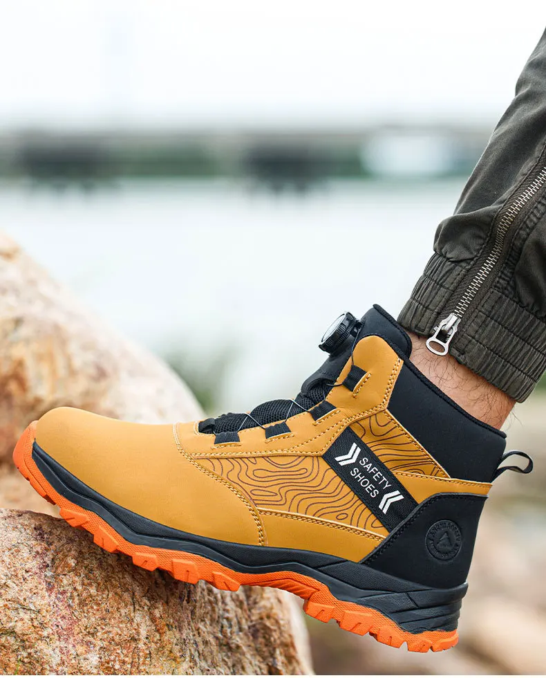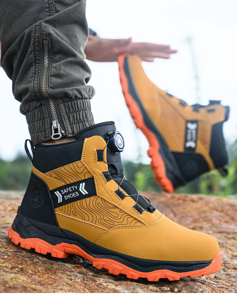 waterproof work shoes high man rotating button safety shoes anti-slip rubber outsole work boots sneakers with steel toe cap