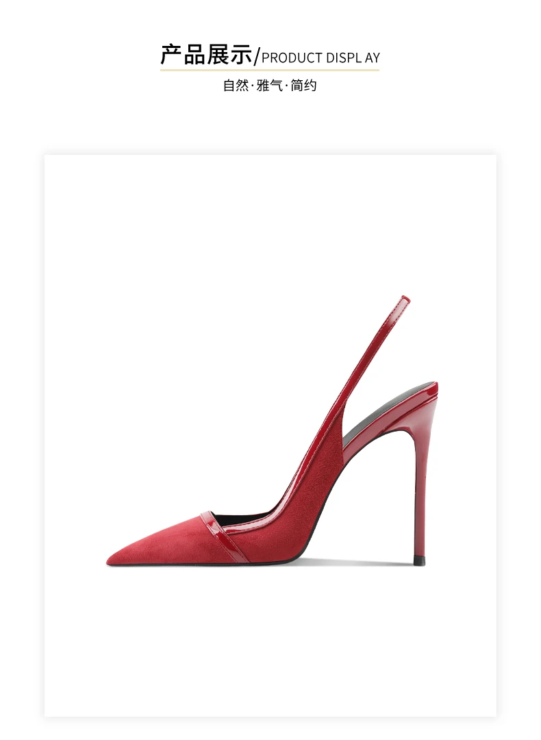 Wine red suede high-heeled summer new shallow mouth pointed thin heel party sexy and fashionable single shoe