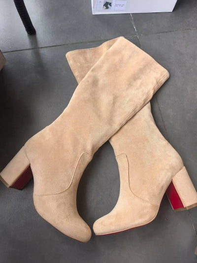 Suede Winter Long Booties Sexy Round Toe Flannel Boats Zipper Leather Knee-High Boots Women High Heel Designer Style Botas Mujer