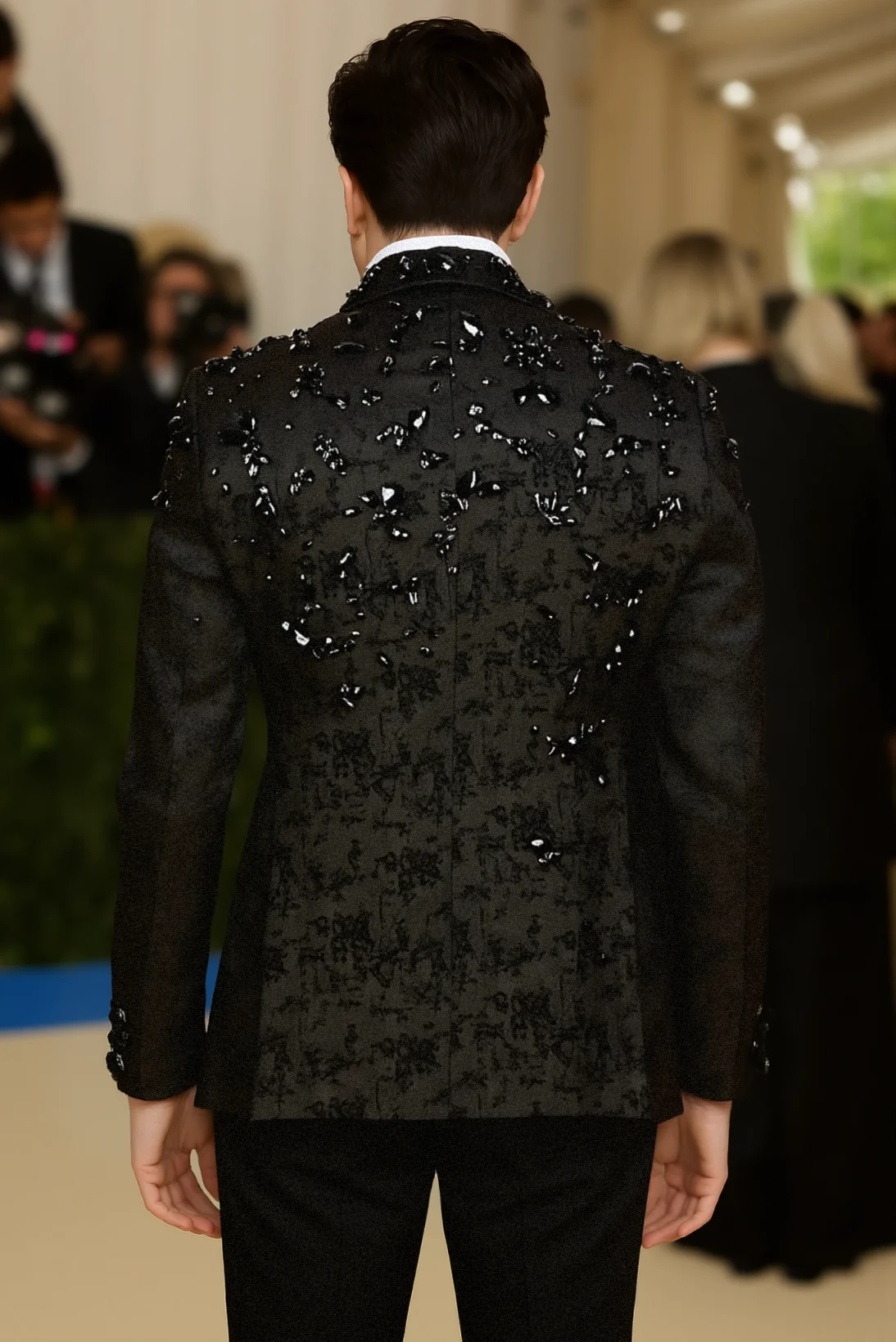 Handsome Jacquard Wedding Tuxedos 2 Piece Jacket Pant Crystal Men Suit Luxurious Peaked Lapel Party Wear Suits Customized