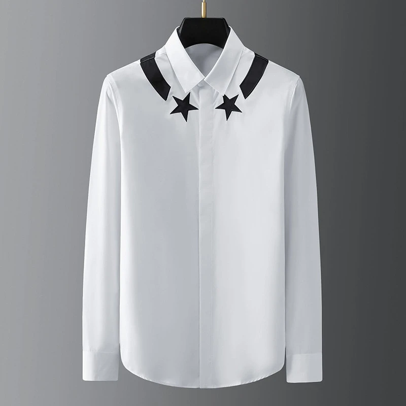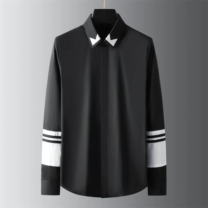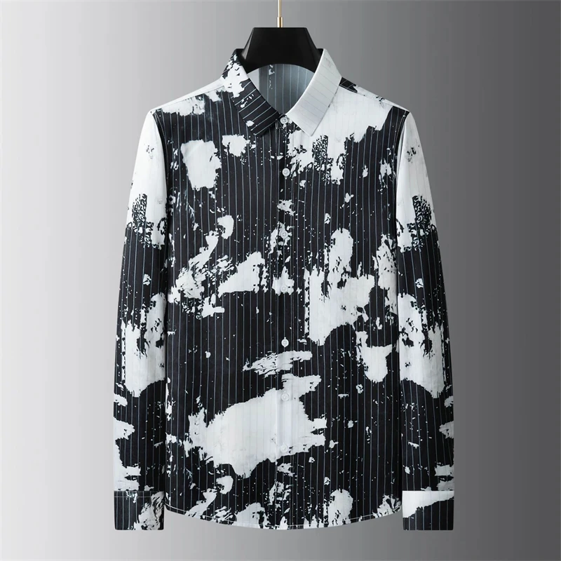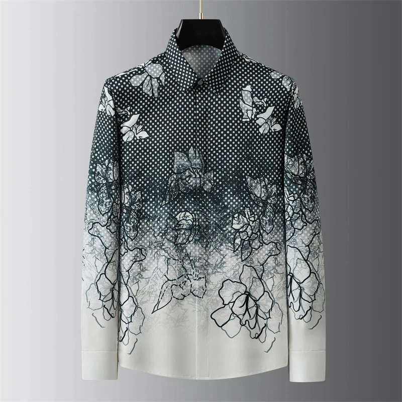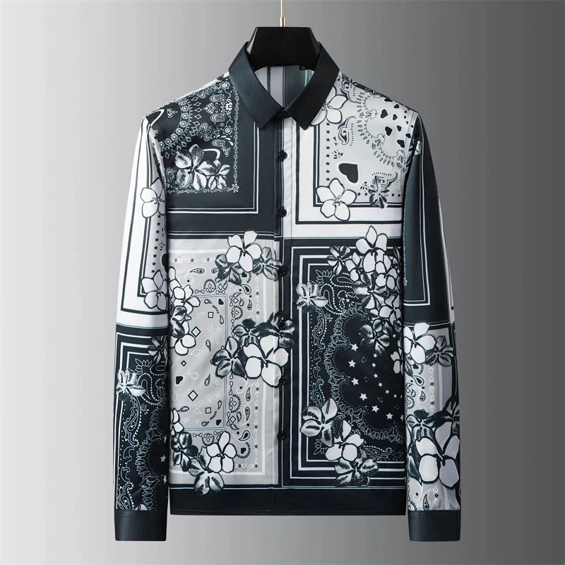 High-end men's shirt printed men's shirt long-sleeved lapel shirt daily outdoor shopping comfortable fabric large size xs-6xl