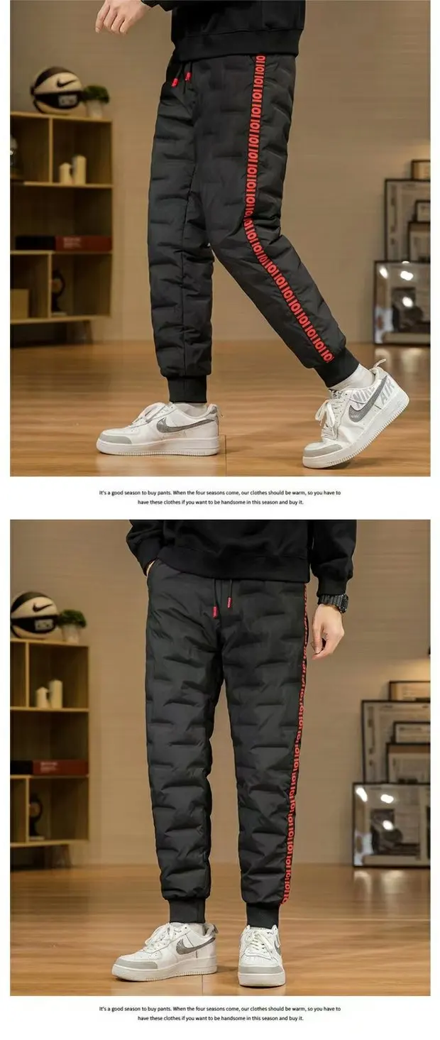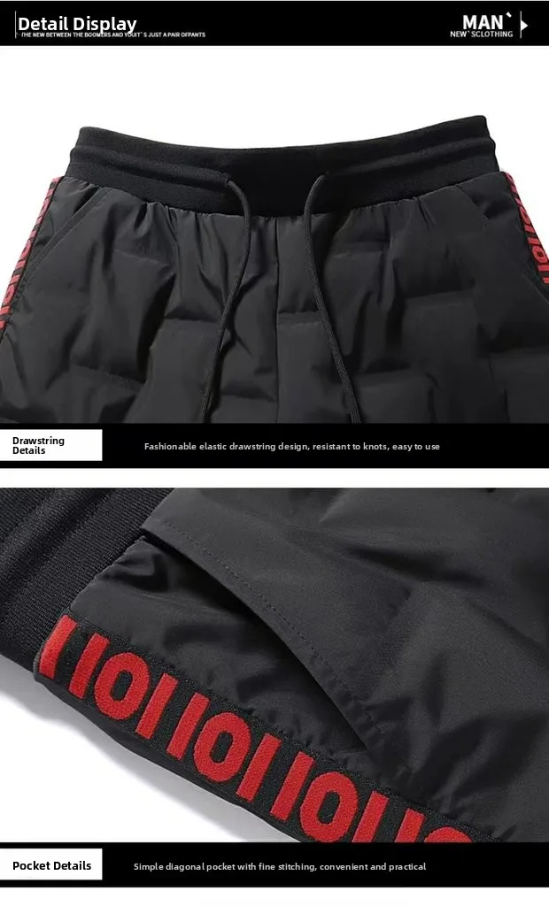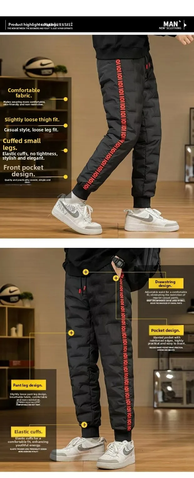 Men's down Cotton Pants Winter Outdoor Wear Elastic Waist Du down Fce Lined Warm Casual Large Size Long Trousers