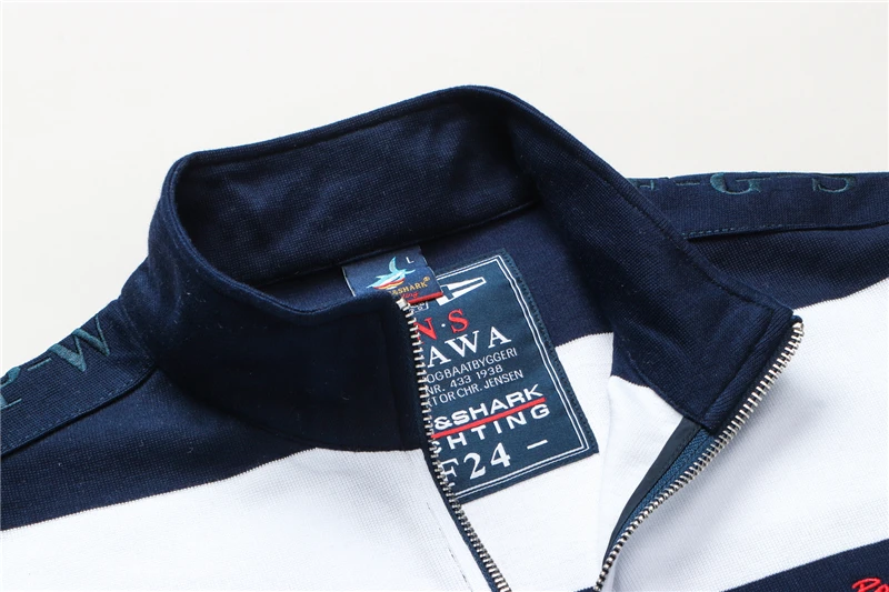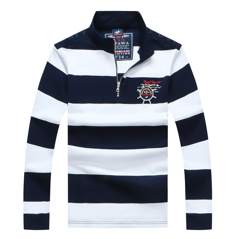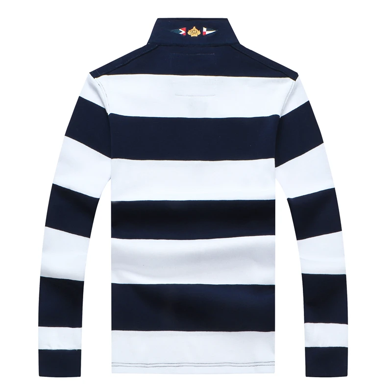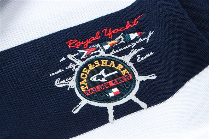 TACE&SHARK Brand Shark Wide Stripes Embroidery Red Long Sleeve Polo Tops Casual Fashion Men Slim Polo Casual Business Clothes