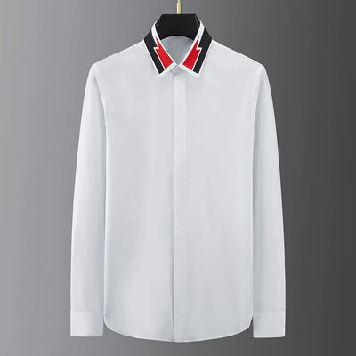 Luxury Letter Print Shirt Men's Long Sleeve Slim Fit Casual Shirt High Quality Fashion Korean Extra Large Size Men's Clothing
