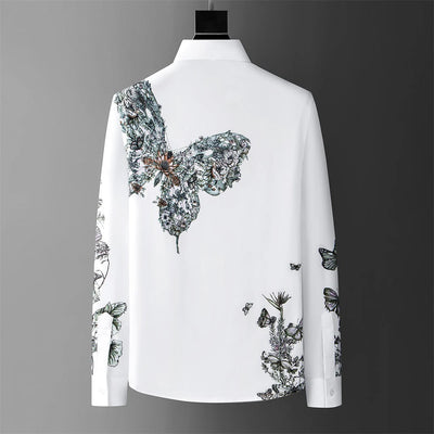 High-end men's shirt printed men's shirt long-sleeved lapel shirt daily outdoor shopping comfortable fabric large size xs-6xl