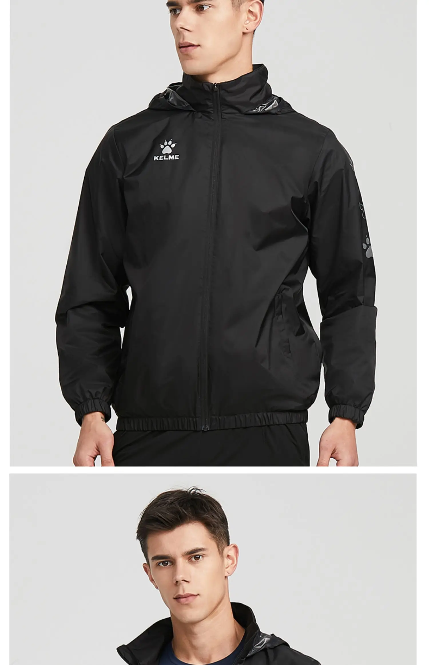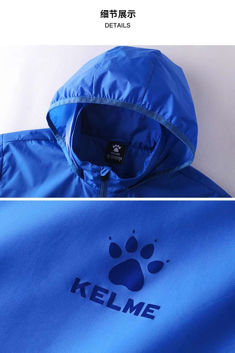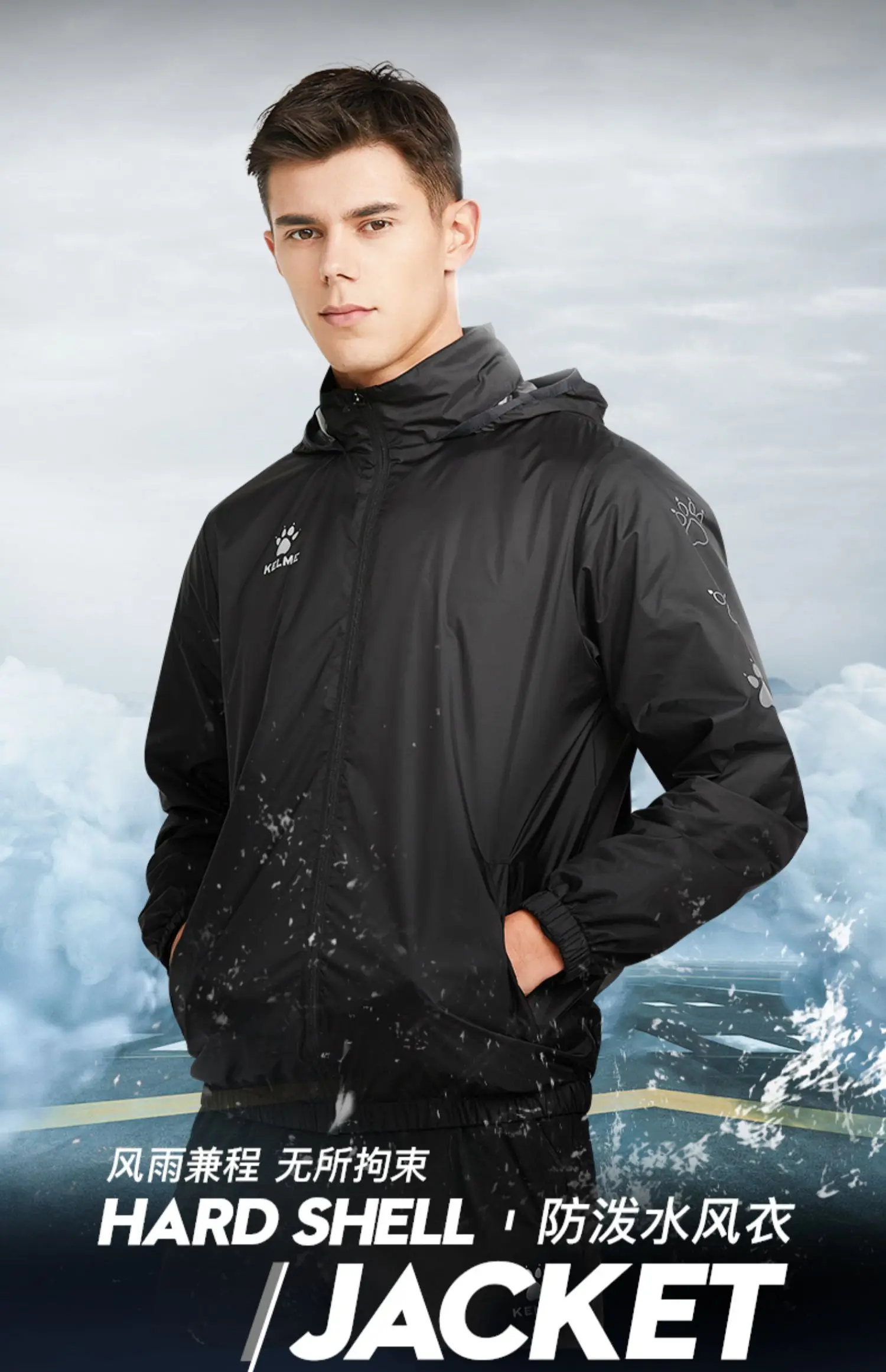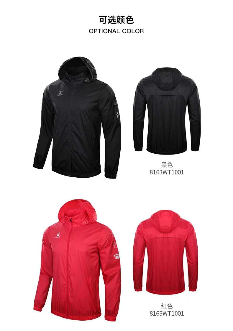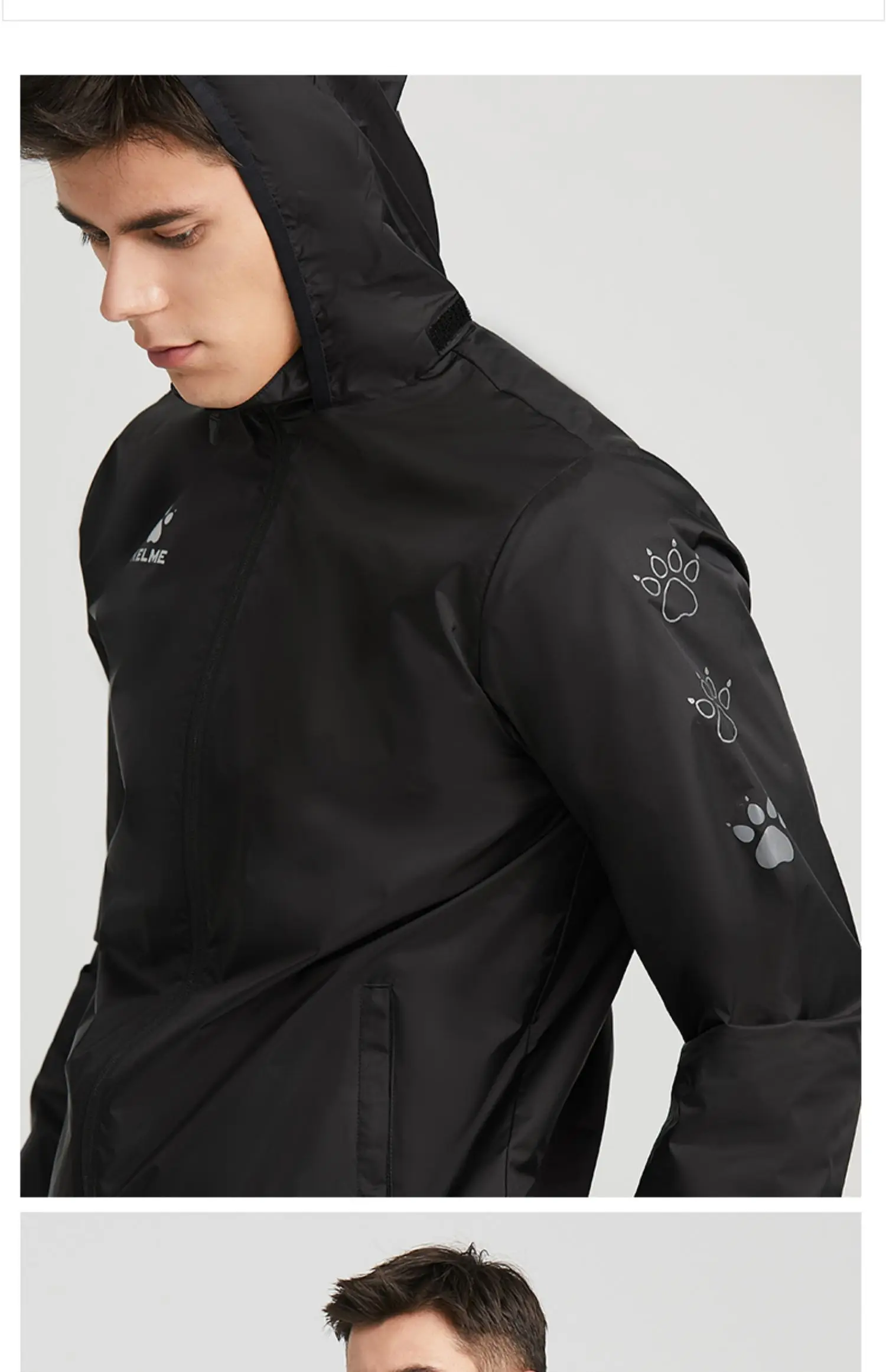 KELME Men's Waterproof Jacket Windbreaker Soccer Training Lightweight Training Outwear Quick Dry Coat 8163WT1001
