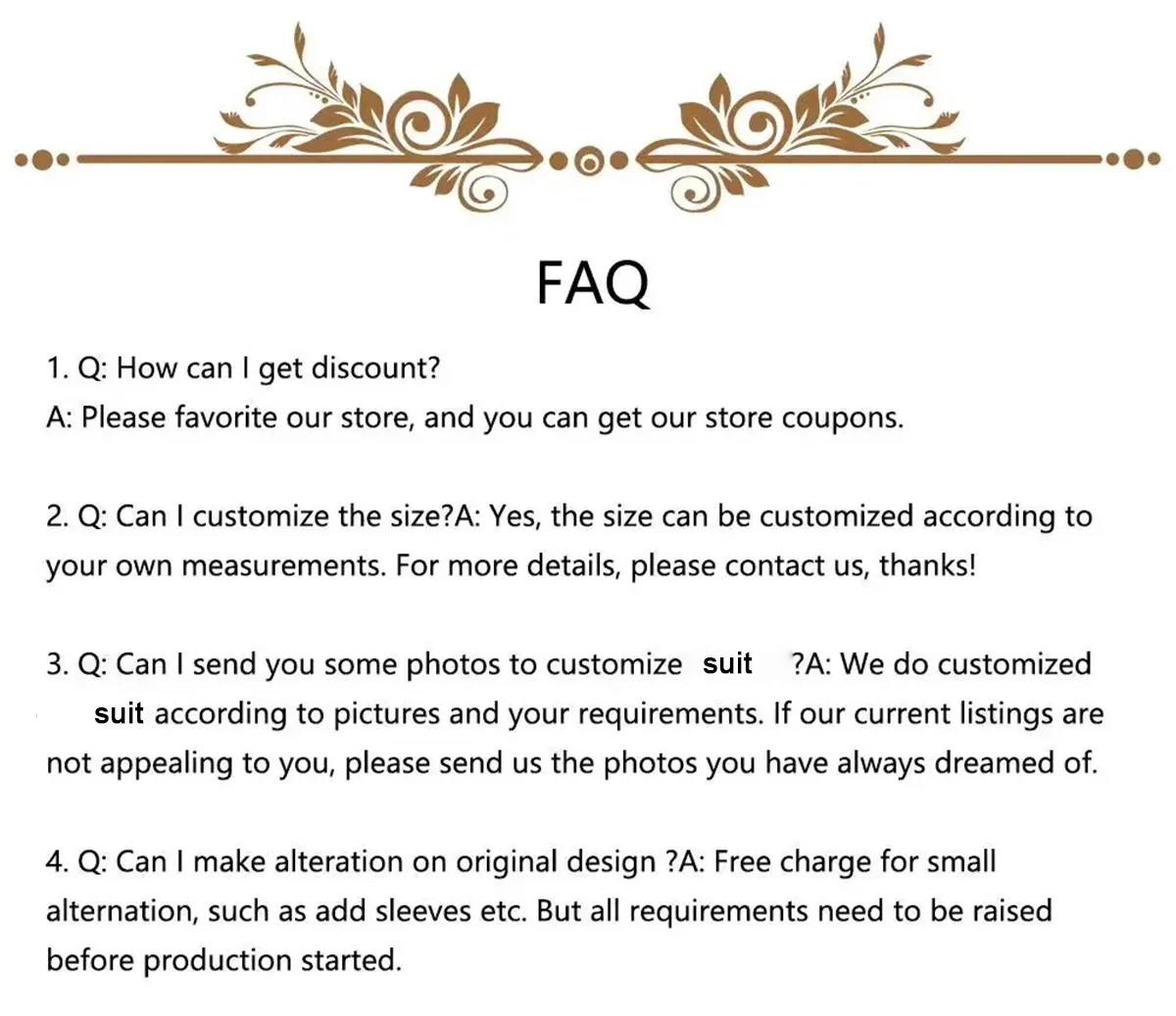 Ex: Shipping and return policies, size guides, and other common questions.