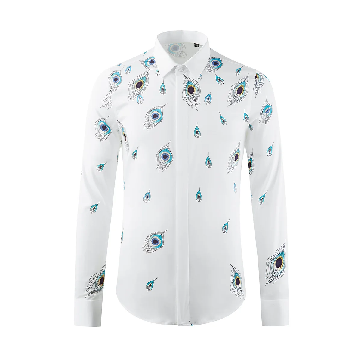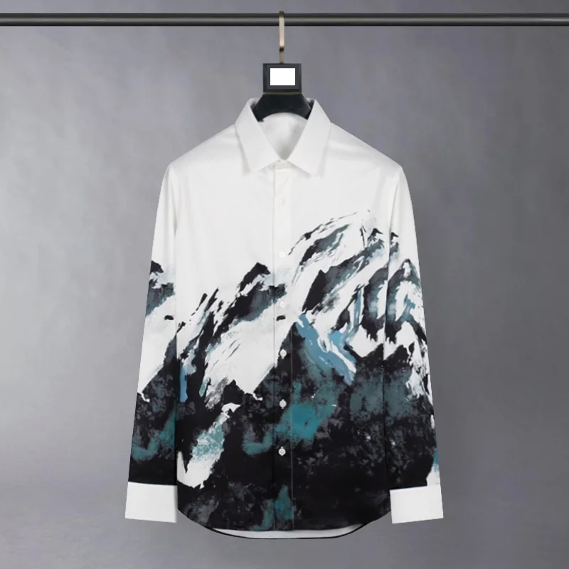 Spring Summer Graffiti Shirts Men Long Sleeve Slim Casual Shirt Fashion Social Business Dress Streetwear Party Tuxedo Blouse