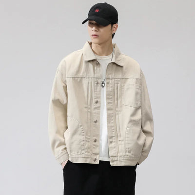 Men's cotton lapel Coat Vintage Style Stylish Cargo Jacket Upscale casual Denim jacket Spring 2025