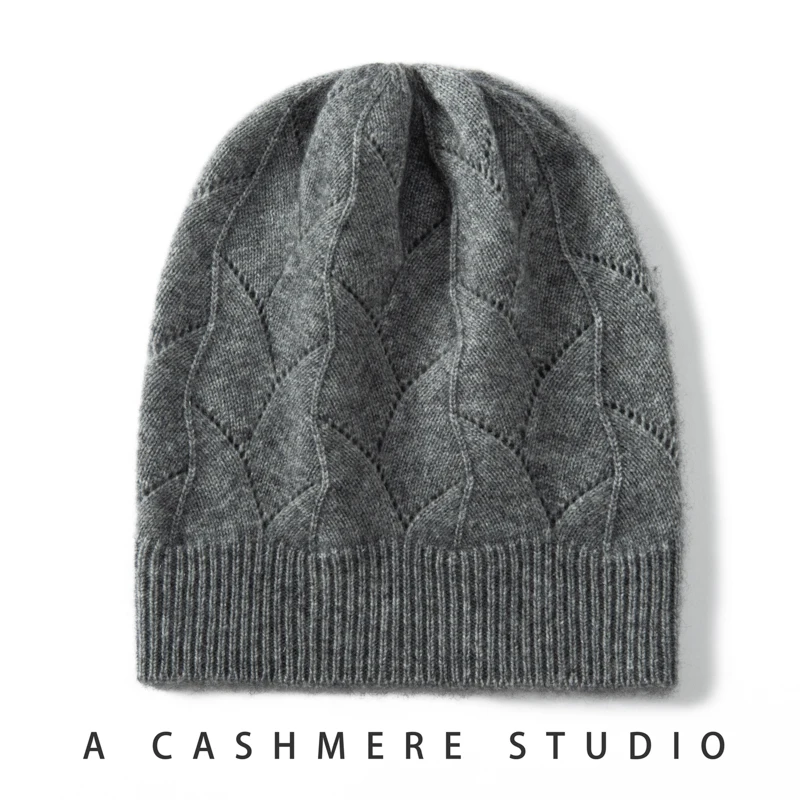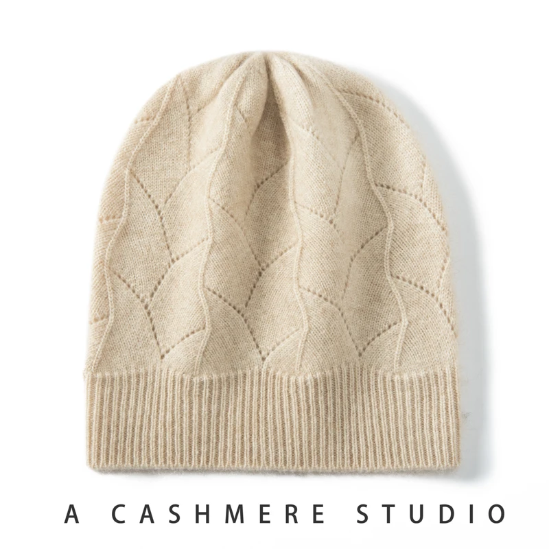 High Quality 100% Cashmere Knitted Hat for Women Winter Beanies Soft Warm Mesh Outdoor Cap Fashion Female Skullies Solid Hats