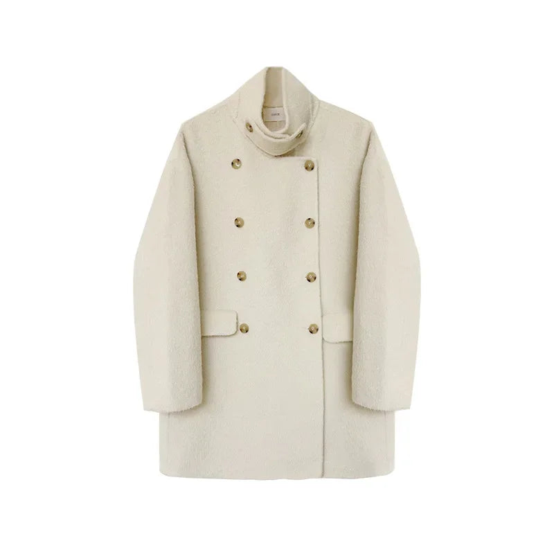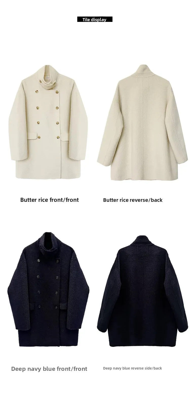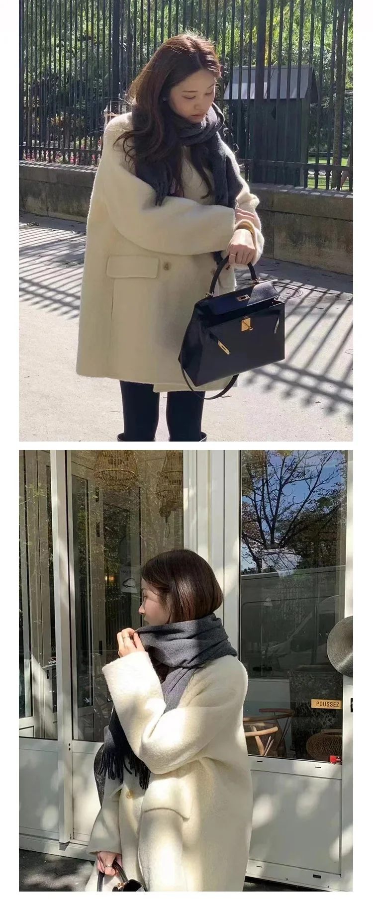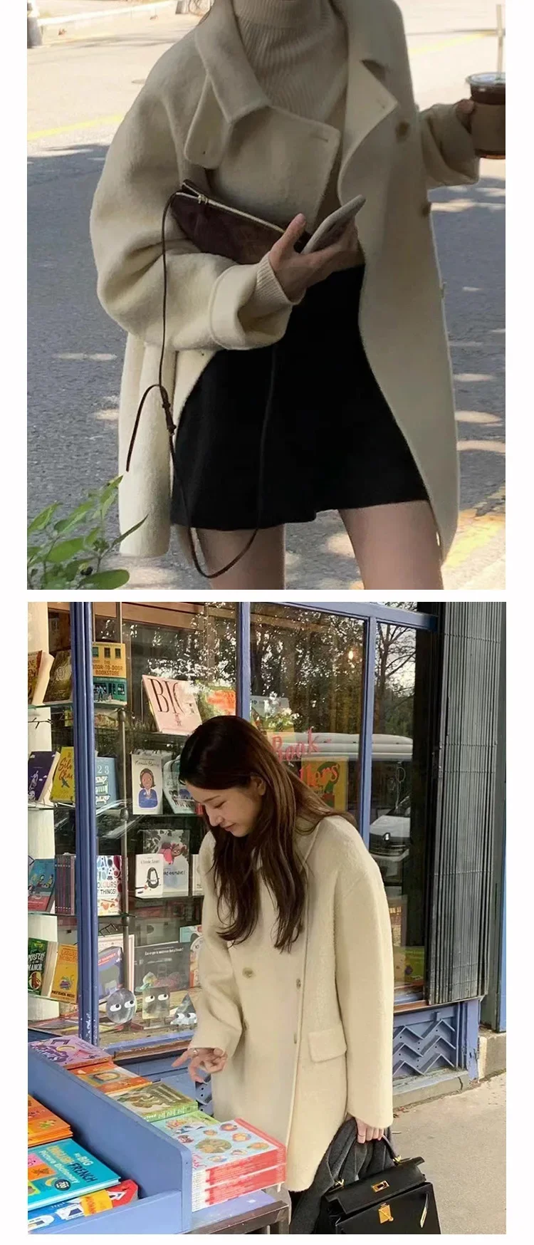 Korean Dongdaemun OUN*CE French Style Loose Gentle Collar Double Button Woolen Coat Medium Length Outerwear Women's Cardigan