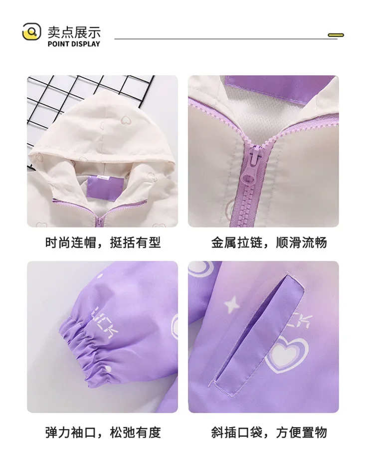 KPop Demon Hunters Girls Hood Jacket Kids Windbreak Coat Outdoor Casual Waterproof Jackets Zip Up Coat Movie Anime Outerwear