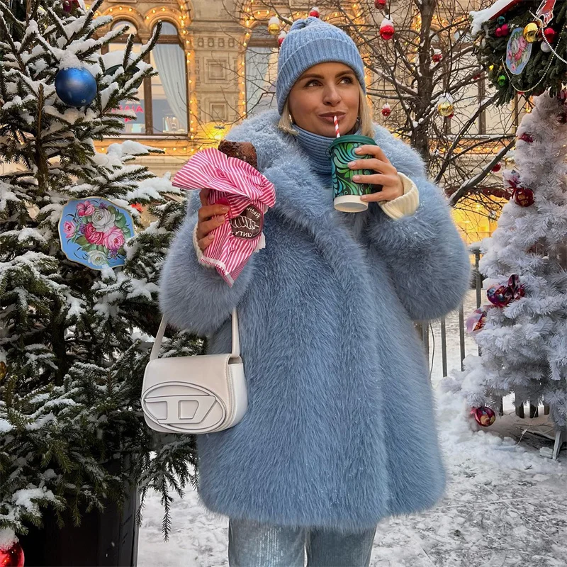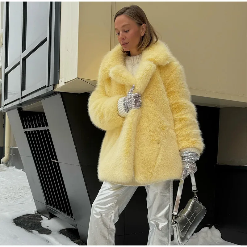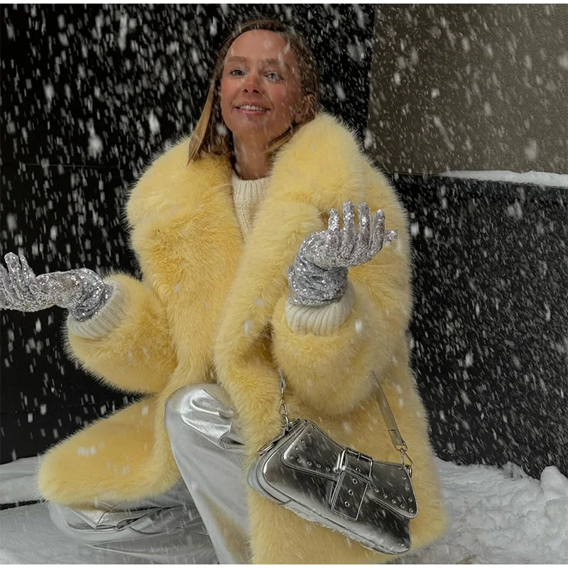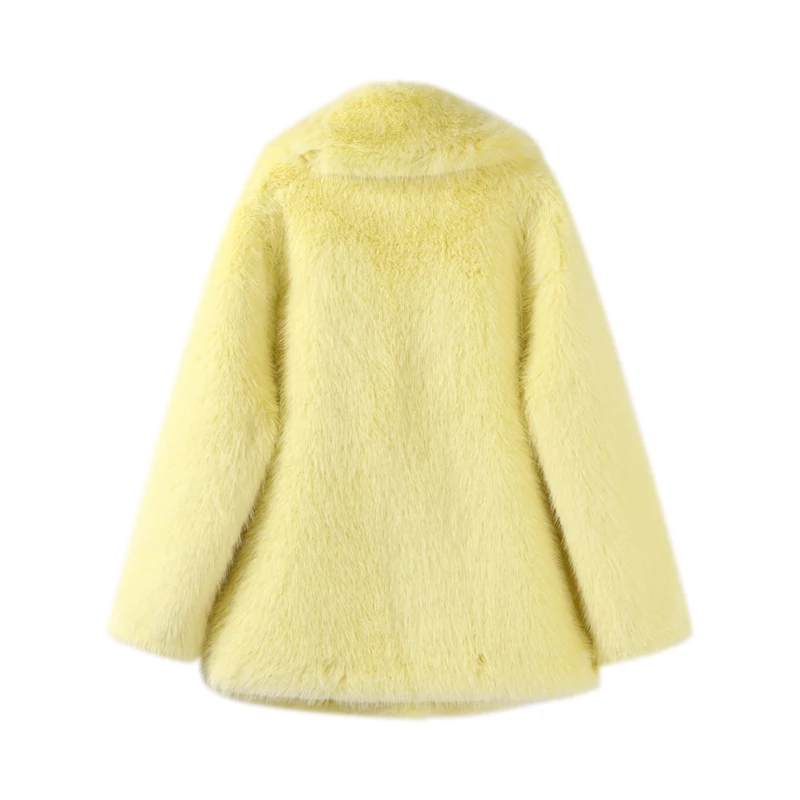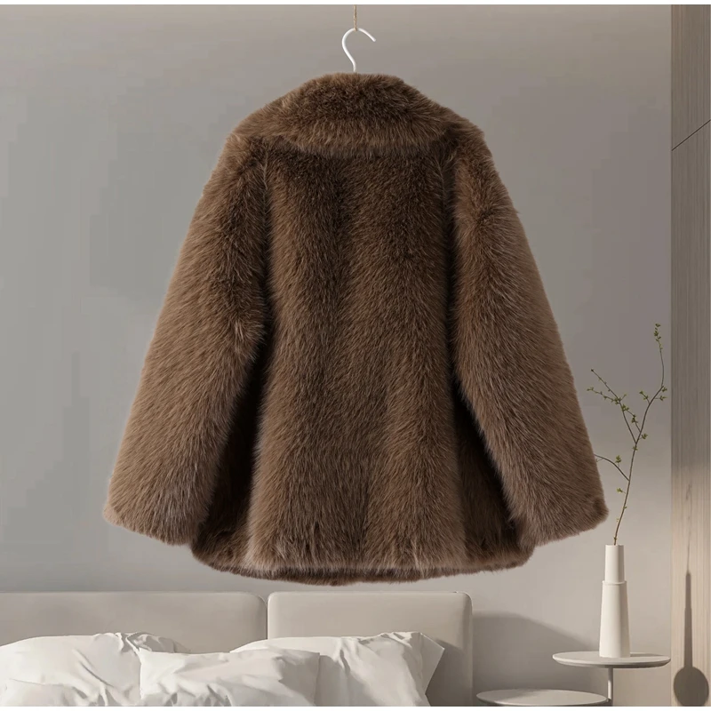 Luxury Faux Fur Women's Coat Turn down Collar Long Sleeve Button Pocket Soft Overcoat Thick Warm Winter Outerwear for Ladies