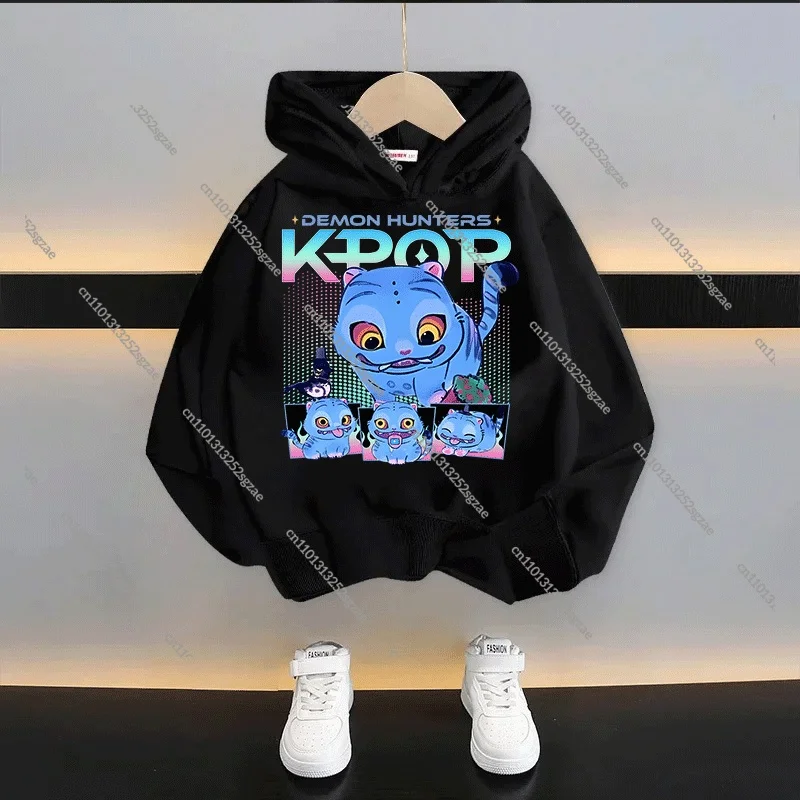 New 2025 KPop Demon Hunters Kids Hoodie: Cartoon Character Hooded Sweatshirt For Boys & Girls Casual Comfy Top