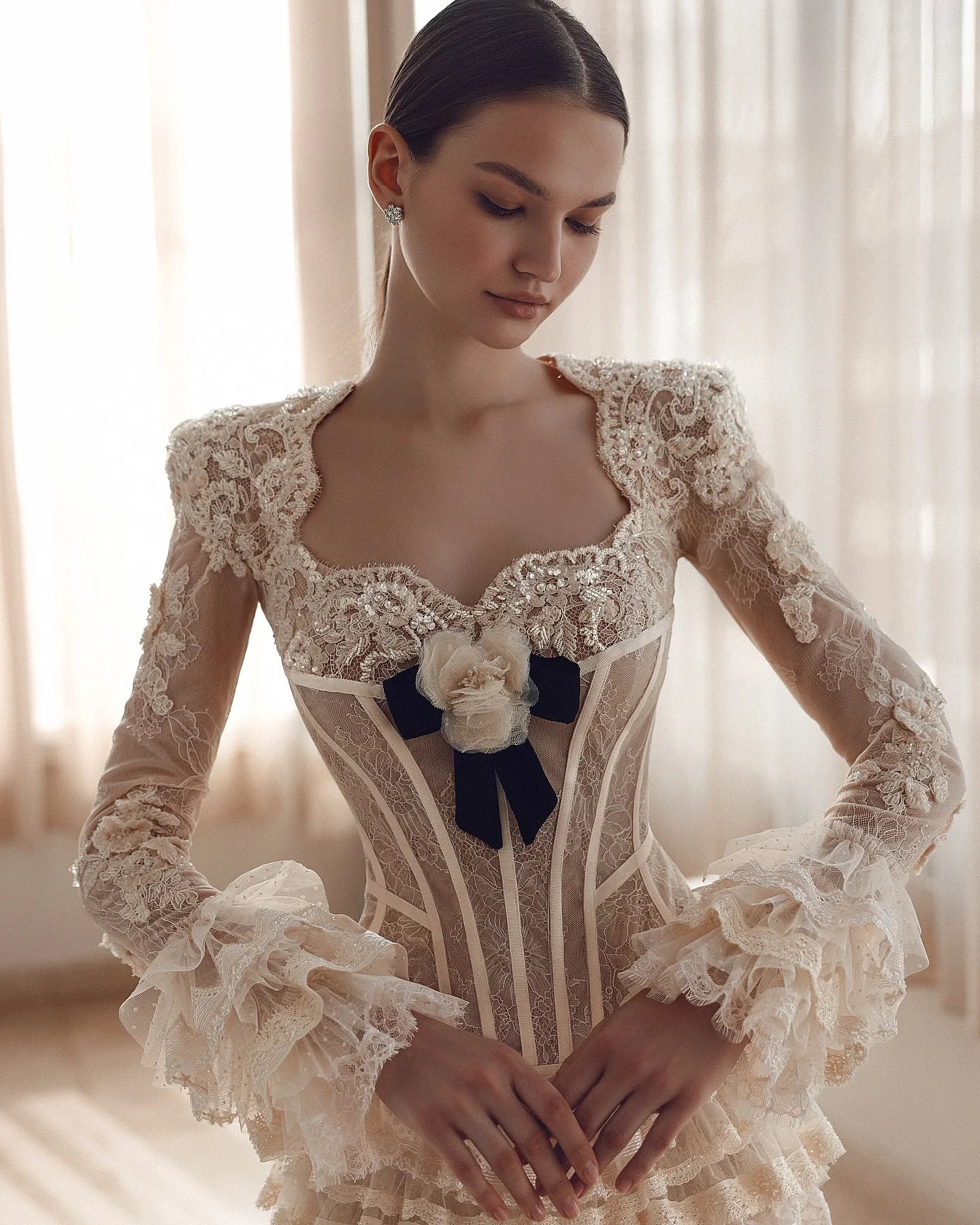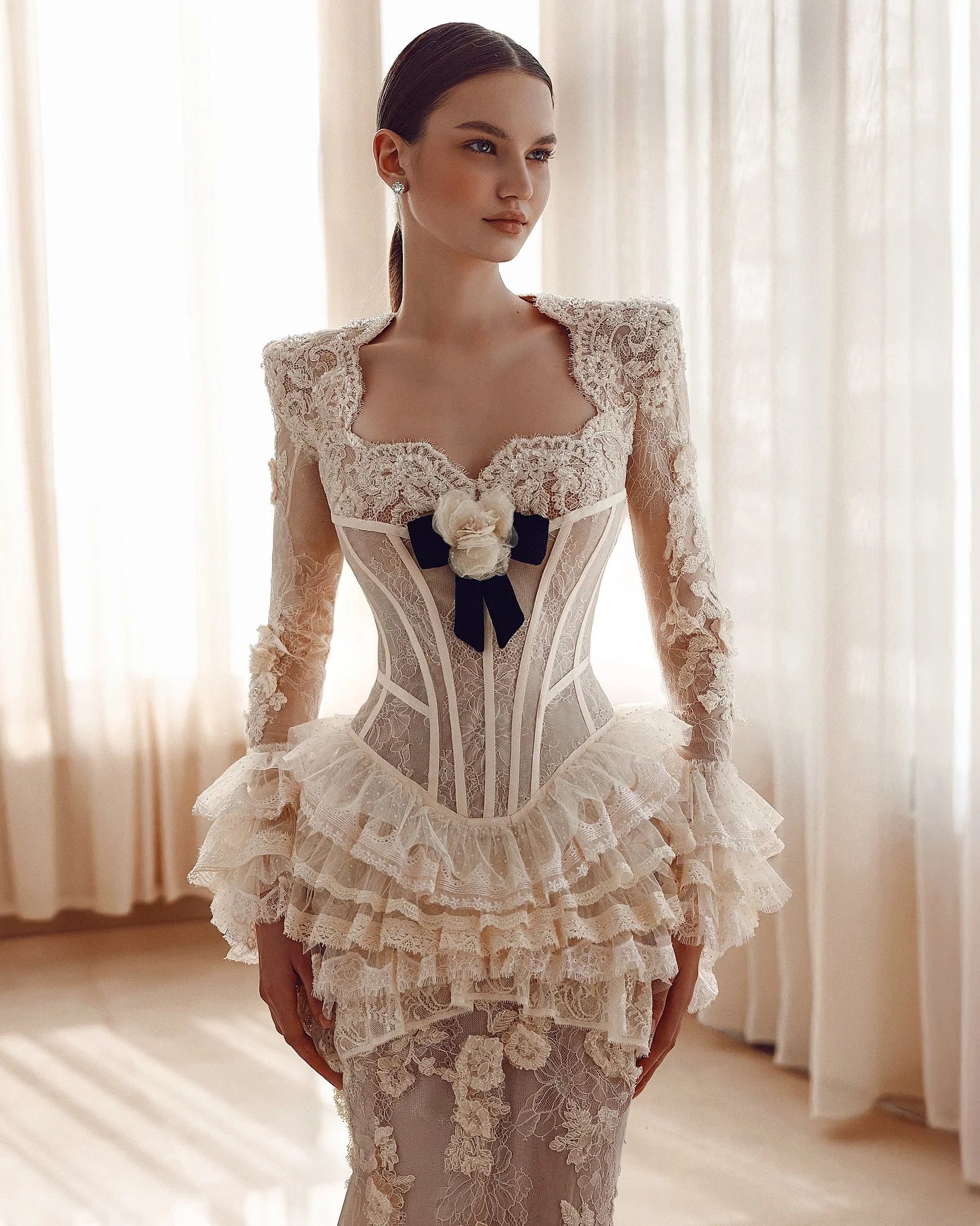 Princess Lace Mermaid Evening Dresses With Delicate Appliques Ruffles Lace Long Bridal Dress Formal Dress
