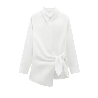 KAR&OT ZA 2025 Women's Spring New Poplin Shirt Single-Breasted Knot Lace-up Button Irregular Slim Fit Top 9479306 Summer