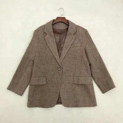 Maxdutti 2024 SS New Blazers Women Nordic Minimalist Style Loose Jacket High Quality Wool Vintage Blazers Ladies