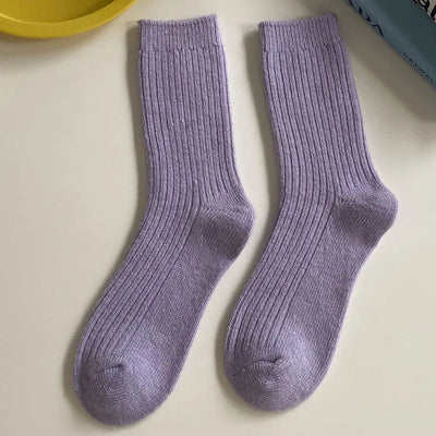 CHAOZHU Thicken Warm Merino Wool Classic Solid Colors Rib Socks Women High Quality Loose Crew Fashion Japanese Korea Sock Winter