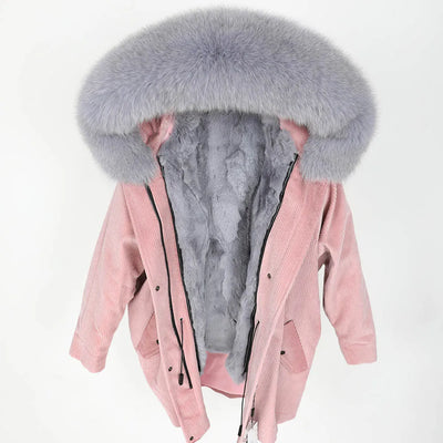 MAOMAOKONG 2022 Winter Parkas With Natural Real Raccoon Fur Collar Women Fur Coat CorduroyWarm Long Jacket Female Clothing