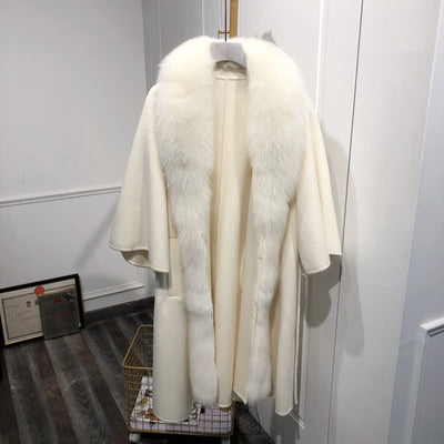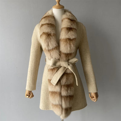 2025 New Autumn Wool Blend Coat Women Elegant Warm Real Fox Fur Collar Winter Wool Coat Female Double-sided Cashmere Jacket