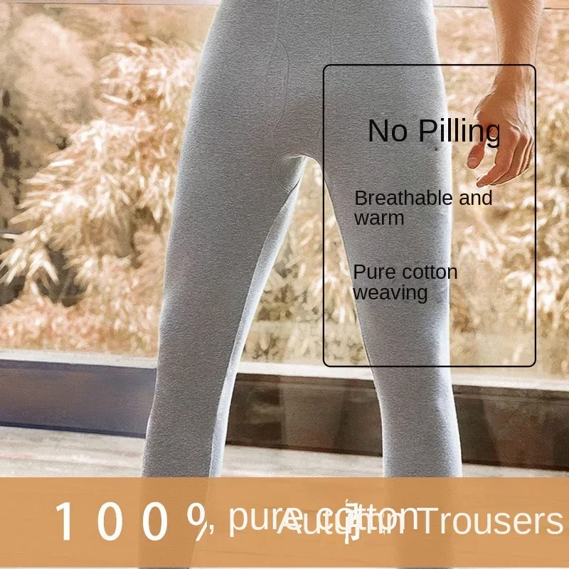 100% Cotton Thermal Underwear Bottoms Autumn Men's Pure Cotton Warm Pants High Waist Warm Loose Pants Knitted Pants