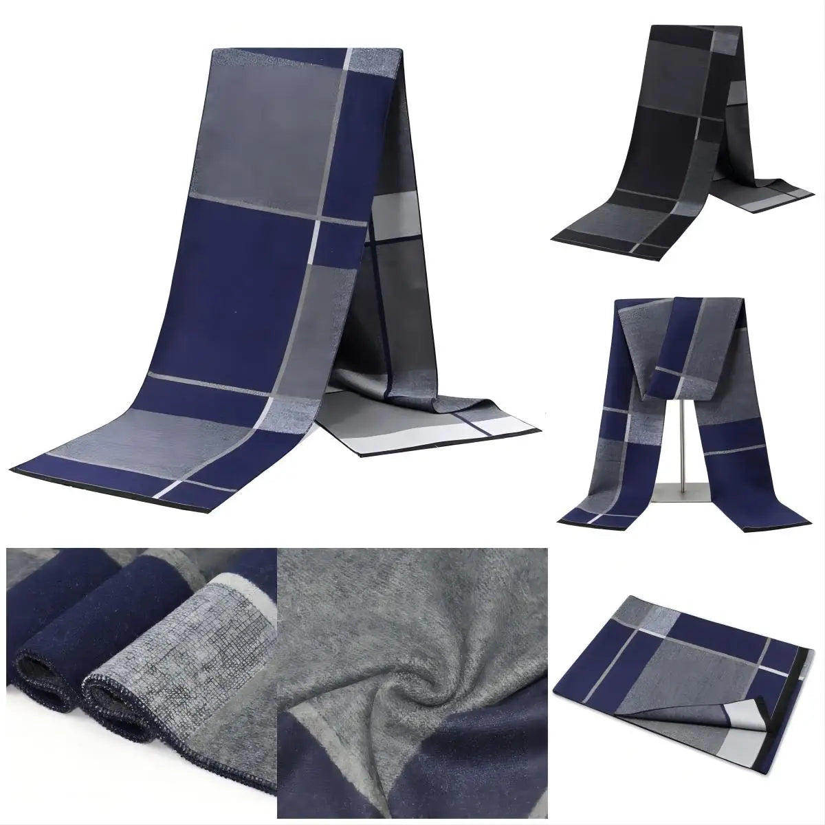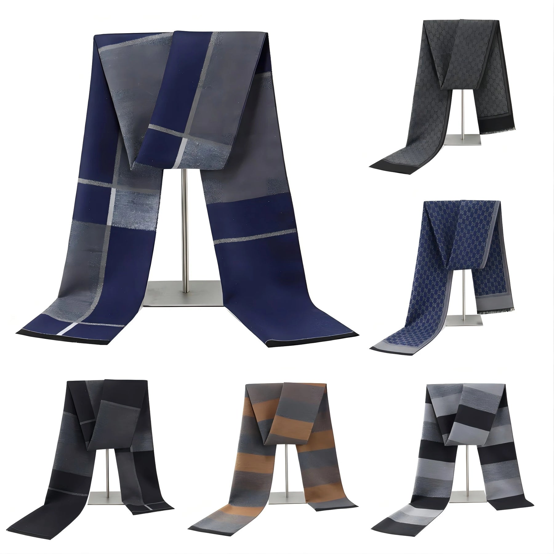 1pc Winter Scarf For Men Check Stripe Paisley Immitation Cashmere Elegant Jacquard Scarves Double Side Warm Windproof Neck Snood