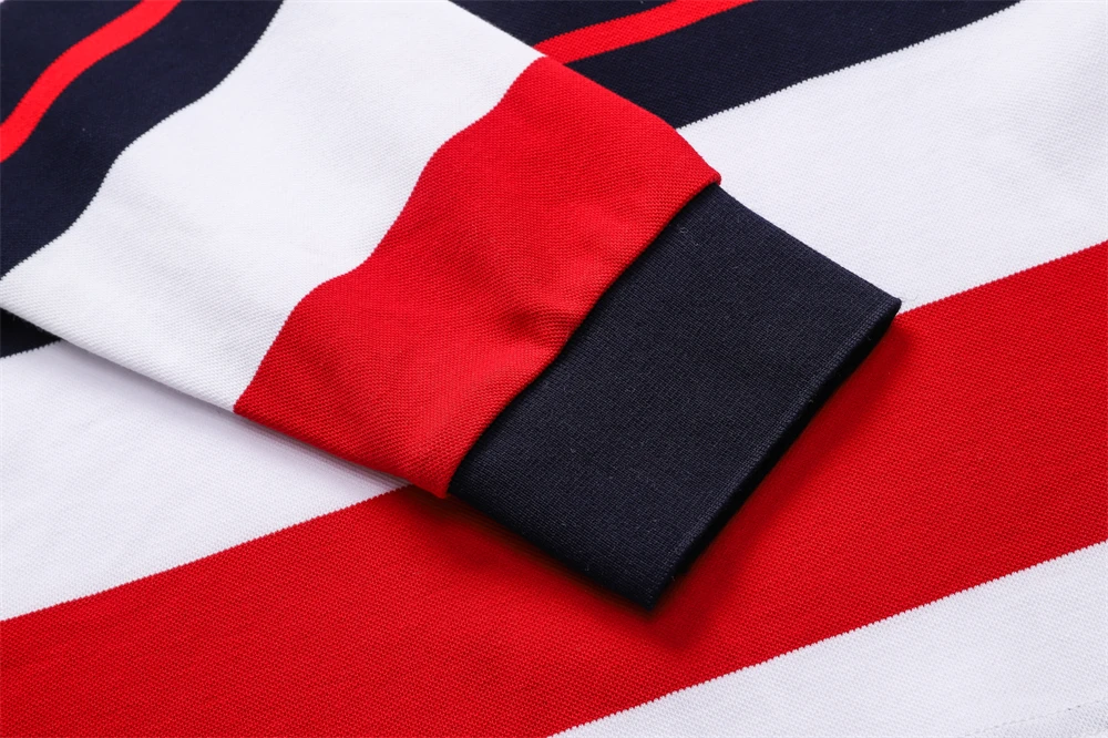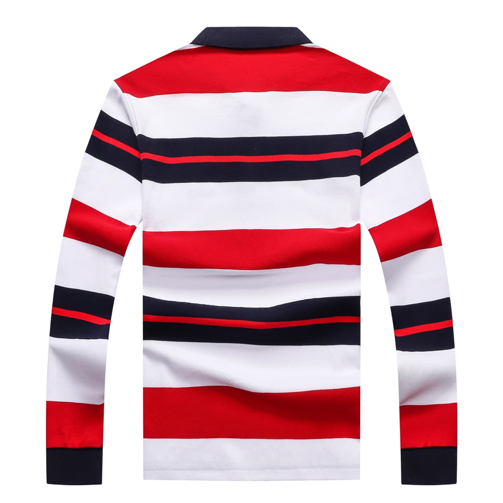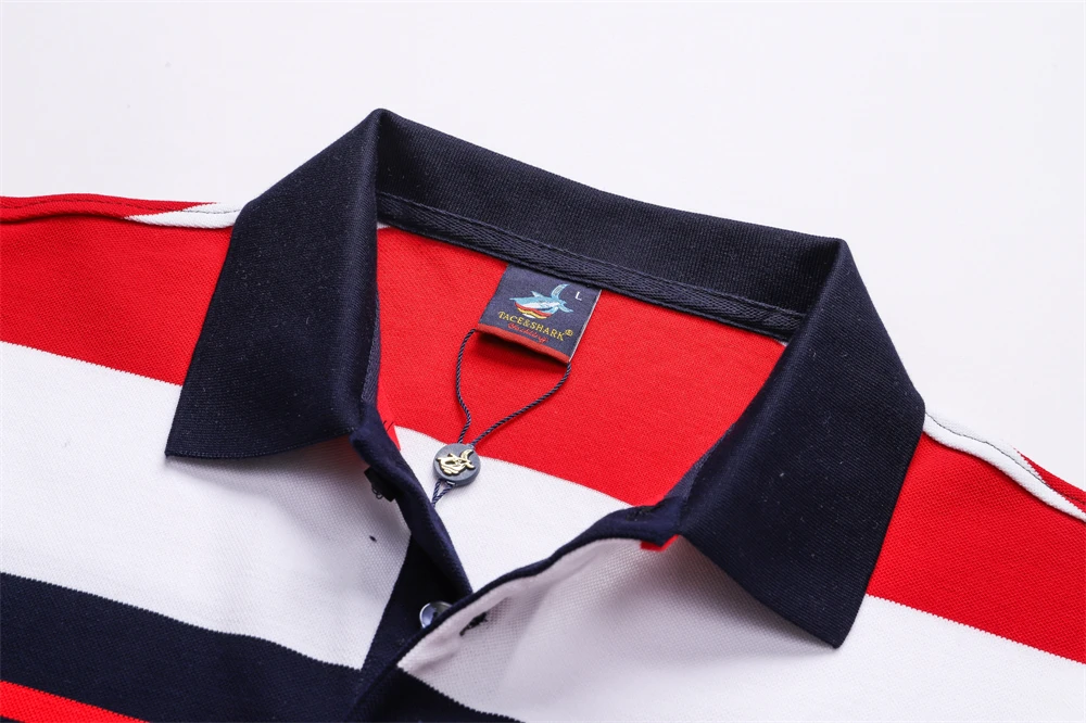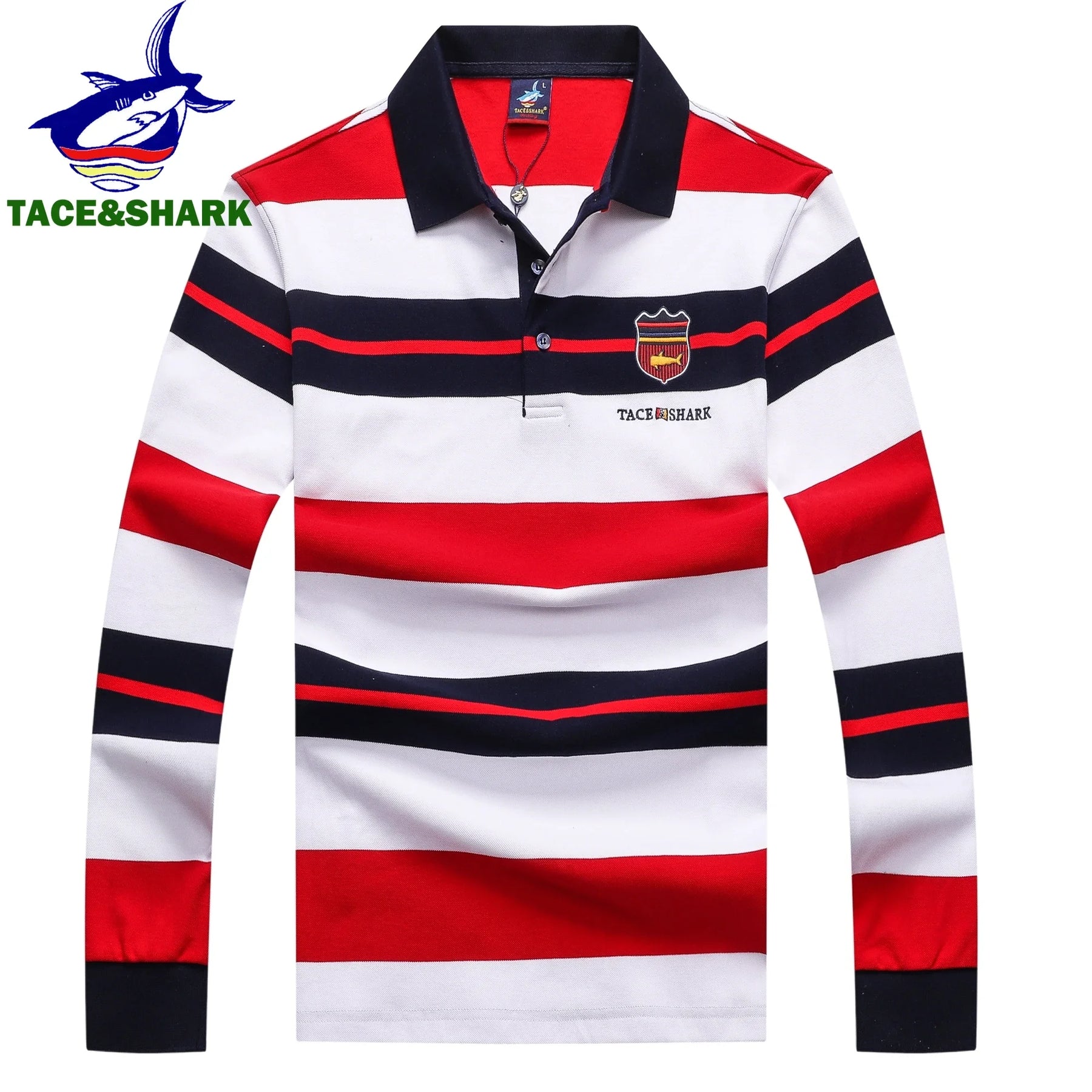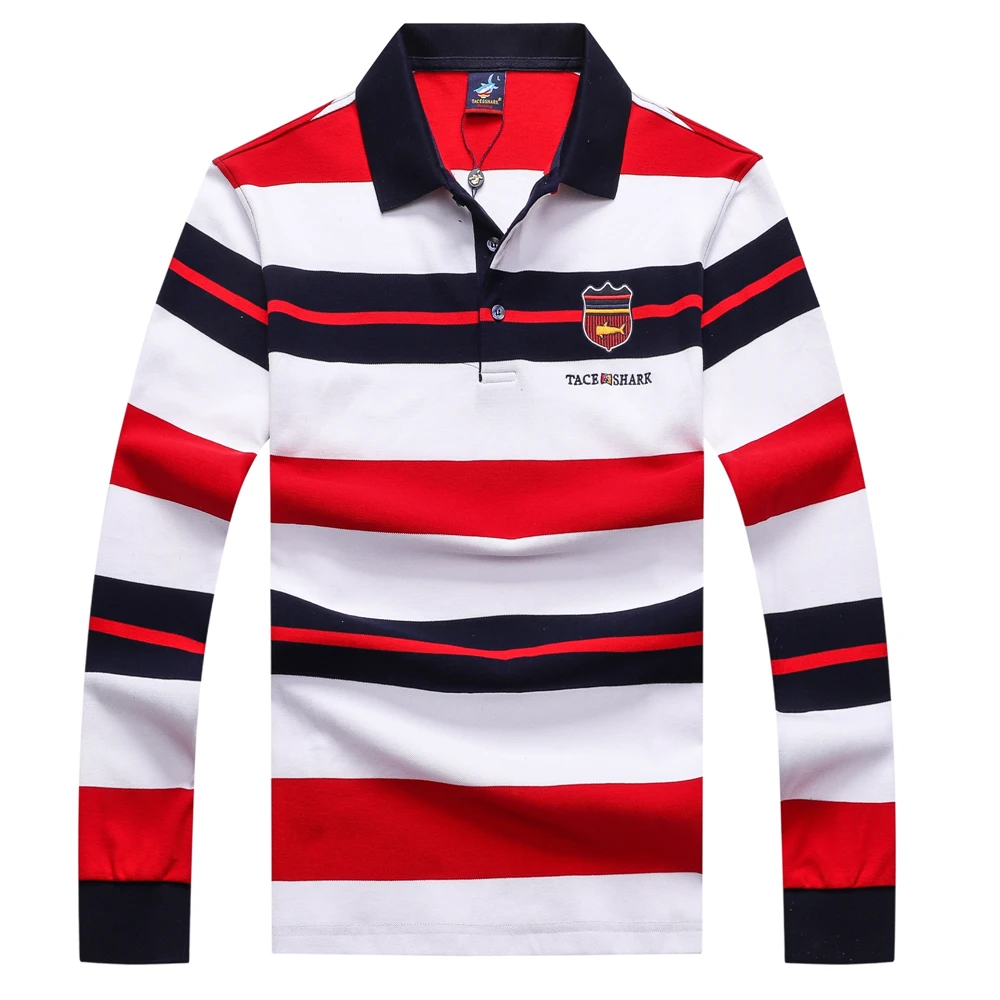 TACE&SHARK Fashion Brand Shark Long Sleeve Polo 2024 Men Stripe Camisa Masculina Casual Business Blue Polo Clothing